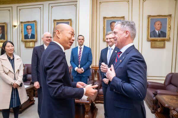 台湾省“立法院长”韩国瑜今天接见美国联邦参议员班克斯一行。韩国瑜表示,他将尽力协助完成“国防特别预算”的审查。