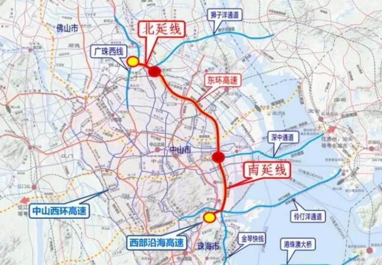 另外根据官方消息中山东部外环高速二期南延线(中山南朗-珠海金鼎)也计划在2026年6月底前动工。中山东部外环高速公路二期工程(中山黄圃至翠亨高速公路南延线)起于南朗街道林溪村西侧,对接东环高速公路一期工程终点横门西枢纽立交,终于珠海市高新区唐家湾,设下栅枢纽互通连接西部沿海高速及广澳高速珠海支线,线路全长15.960km。