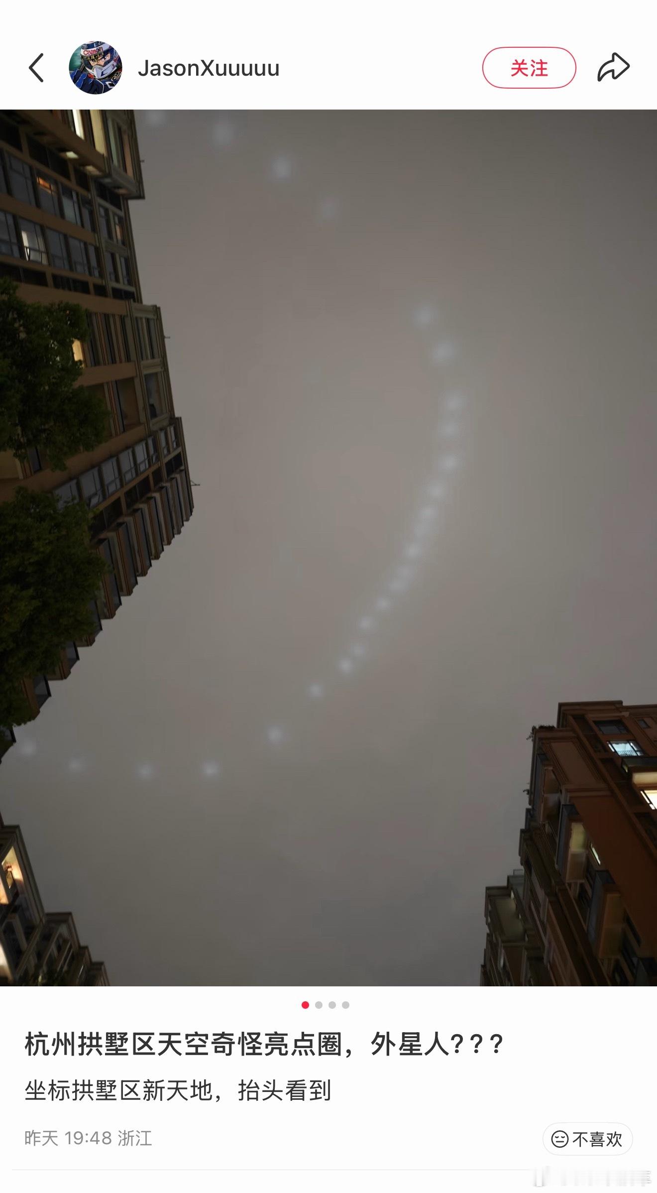 昨天有网友在杭州见到神秘天文现象,疑似外星人or外星飞船评论区网友给出了答疑:蔚