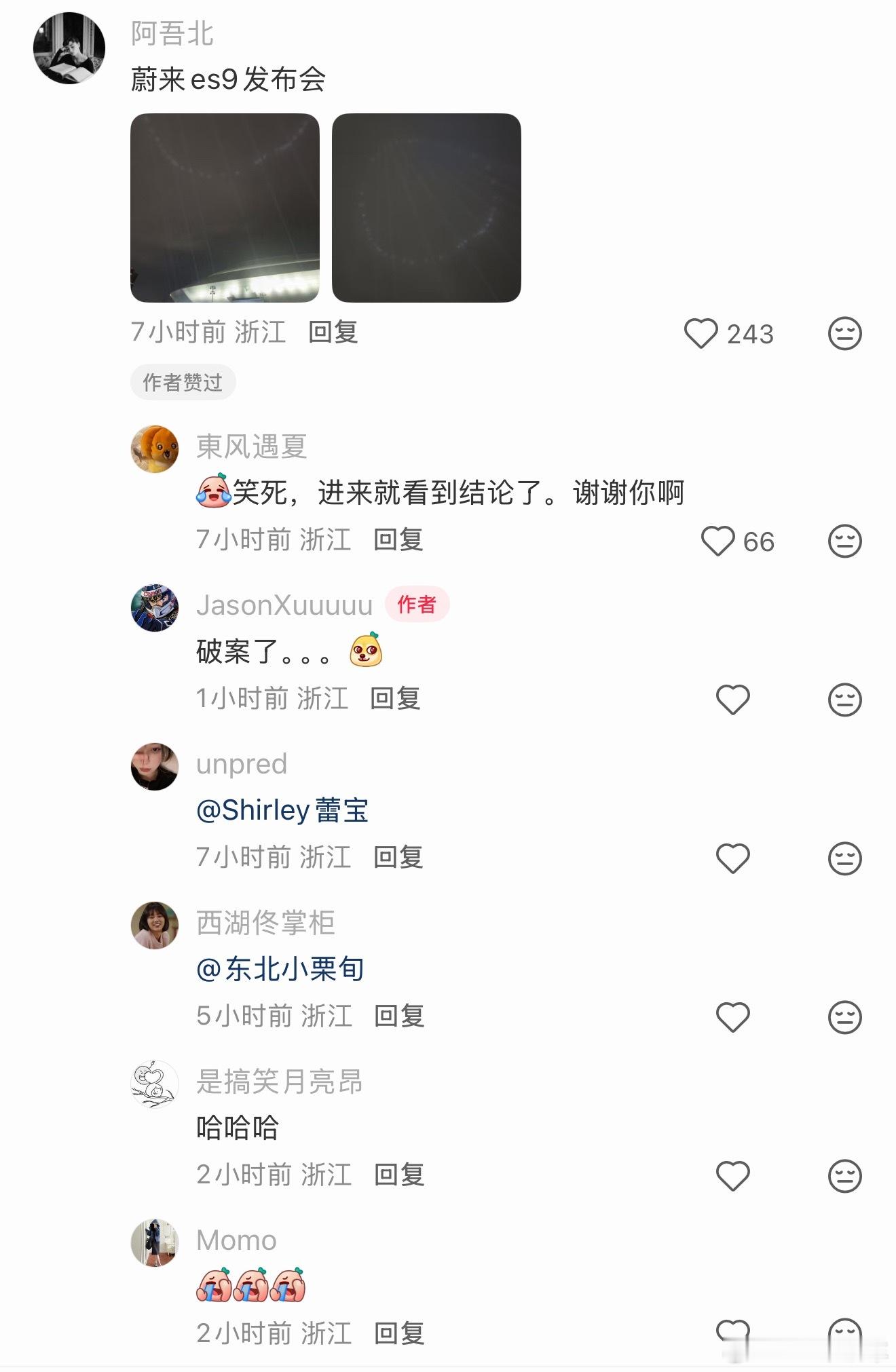 昨天有网友在杭州见到神秘天文现象,疑似外星人or外星飞船评论区网友给出了答疑:蔚来ES9发布会笑了我一早上哈哈哈哈
