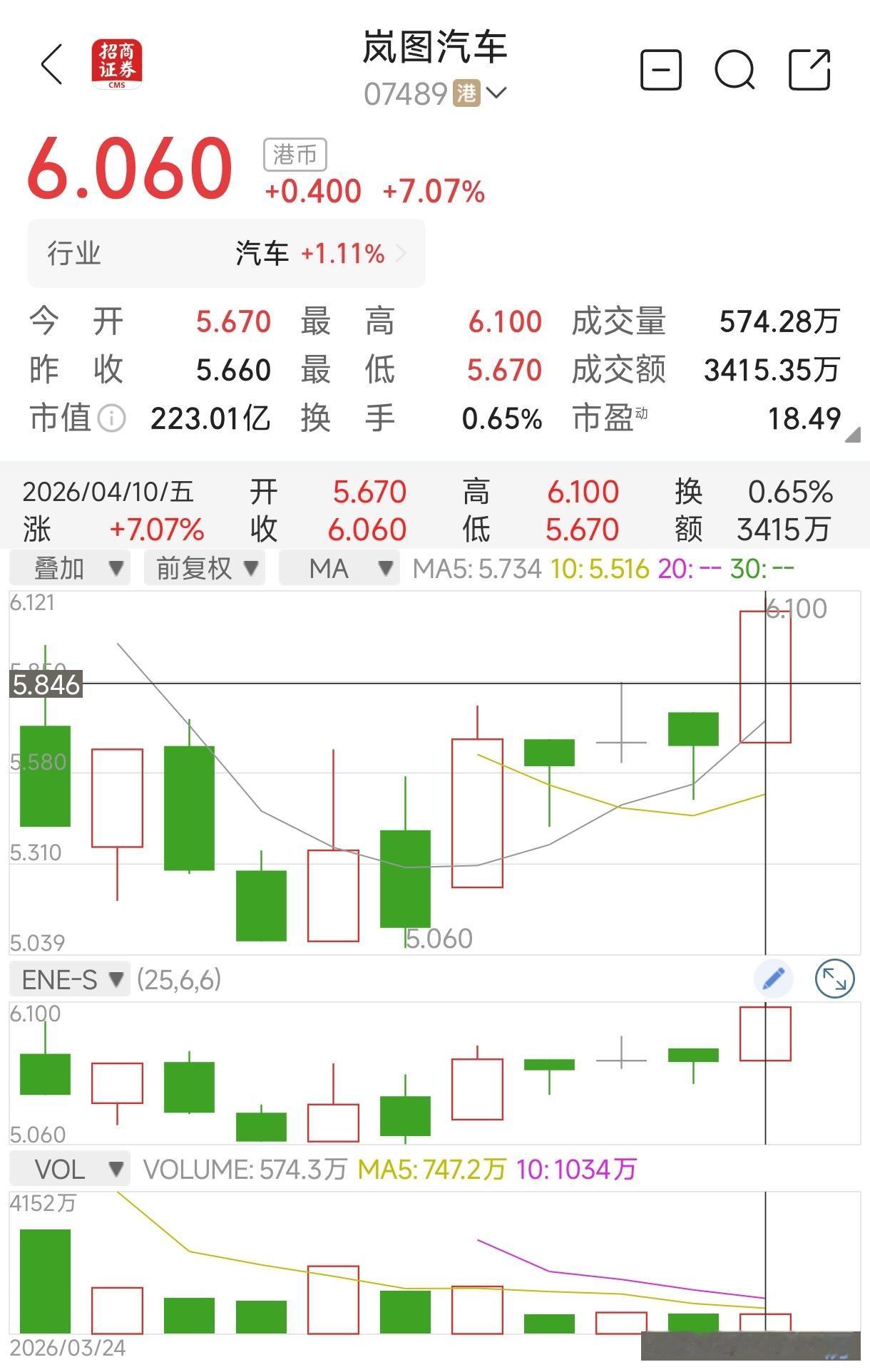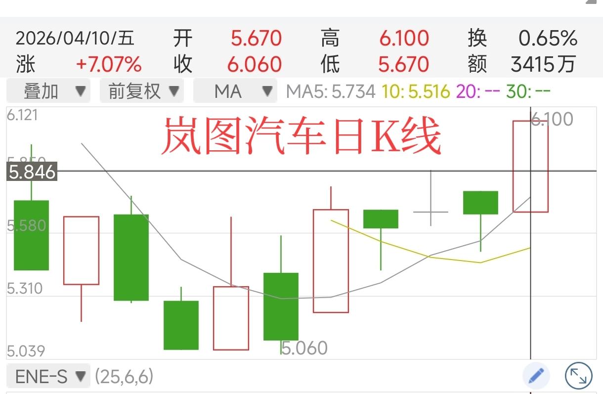 岚图汽车股价大涨7.07%,午间收盘6.06港元,市值来到223亿港元。4月份前5个交易日累计涨幅18.36%,是表现最好的车企之一。