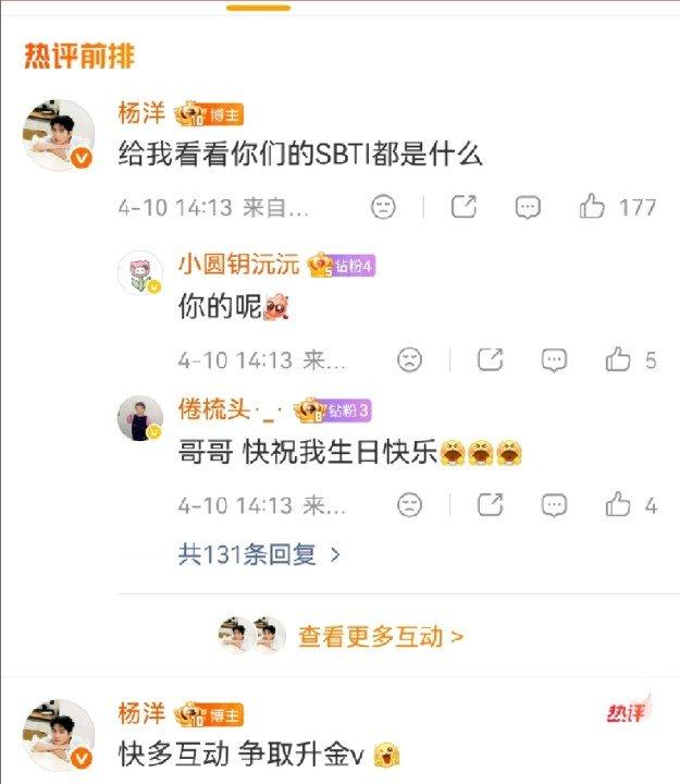 杨洋争取升金V杨洋问大家的SBTI是什么杨洋不得不营业了