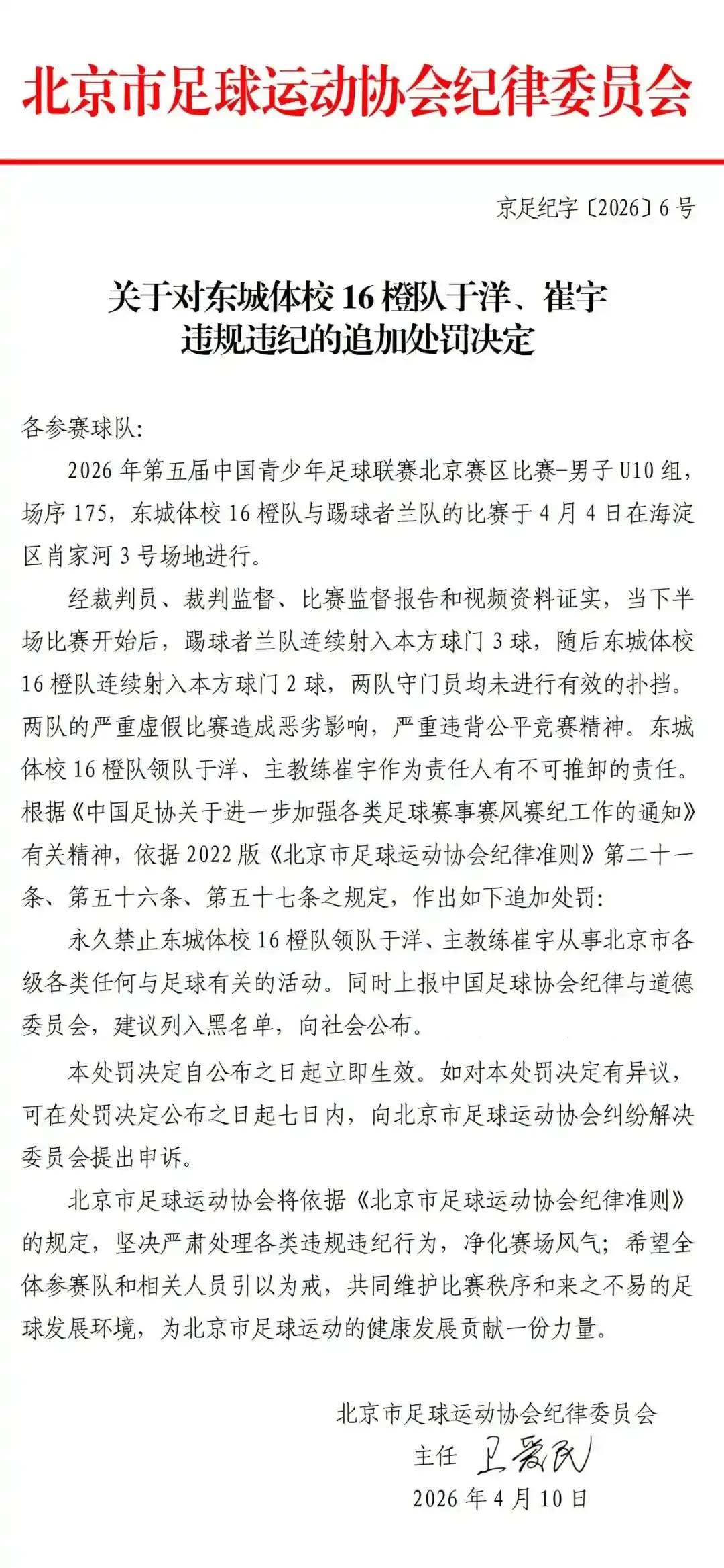 崔宇、姜凯、于洋、王征,这四个名字记住了。就是他们在场边比划,让9岁10岁的娃娃往自己门里射。孩子懂什么?教练指哪打哪,跟提线木偶似的。最寒心的是什么?东城教练看对面连灌俩,第一反应不是制止,是投诉——投诉不成,立马回头让自家孩子也踢。上梁不正下梁歪,坏是传染的。