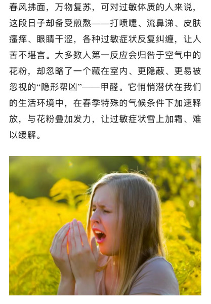 打喷嚏、皮肤瘙痒、呼吸困难等等......气温不稳定,免疫力下降,频繁过敏,这些症状不一定是季节性花粉过敏啊,可能是甲醛超标! 生活笑料撞满怀