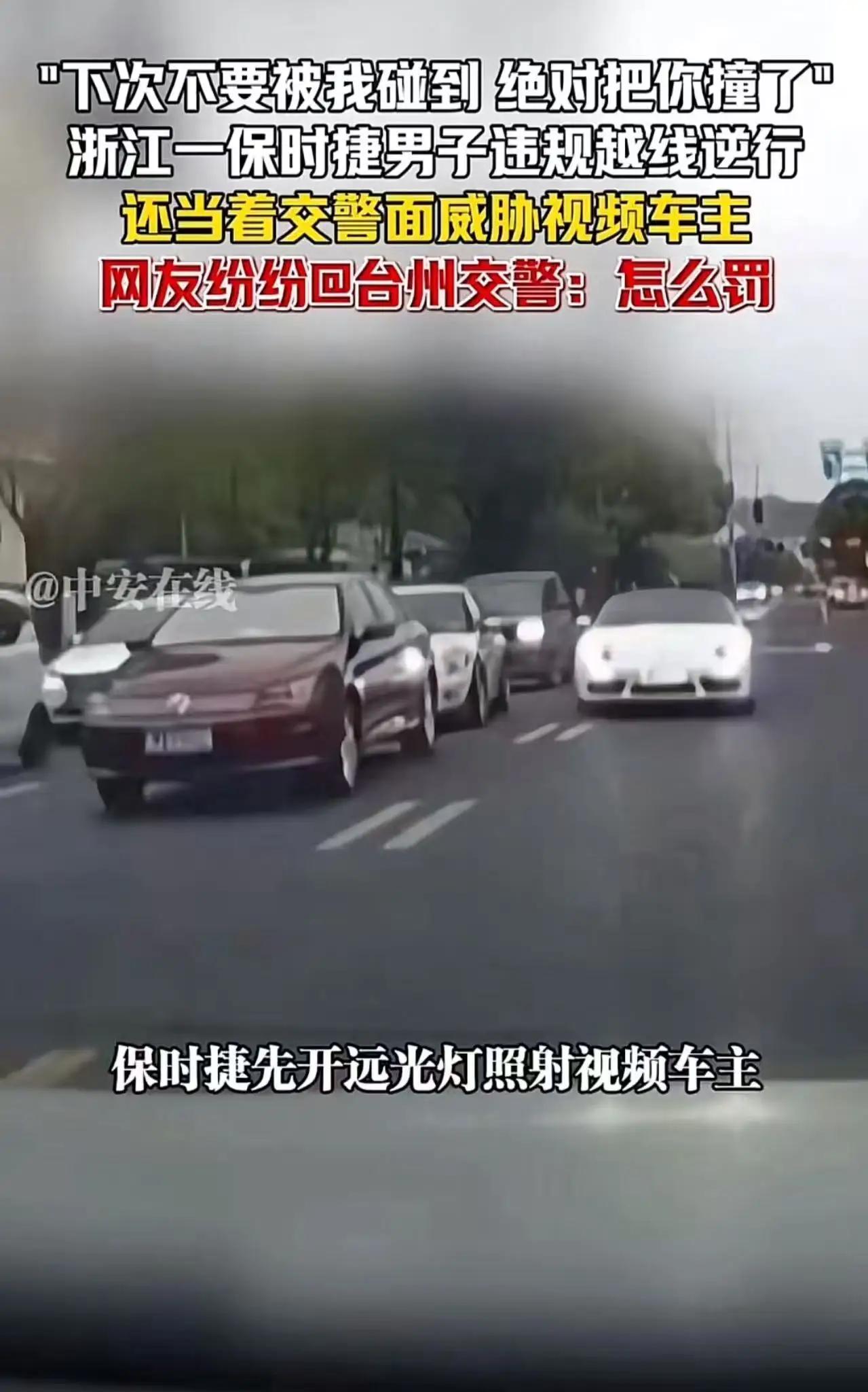 诸位朋友,今儿咱们单说一桩发生在浙江台州的“马路狂想曲”。这事儿,听着像“电影桥段”,实则是一记狠狠抽在“特权幻觉”脸上的响亮耳光。一辆保时捷,开着远光灯,逆行逼停对向车辆,这操作已是“胆大包天”;更离谱的是,交警到场劝阻两分钟,这位吴姓车主竟摇下车窗,当着执法者的面撂下狠话:“下次不要被我碰到,绝对把你撞了!”这哪是“路怒”?分明是“无法无天”,把马路当成了自家的“后花园”,把法律当成了“耳旁风”。