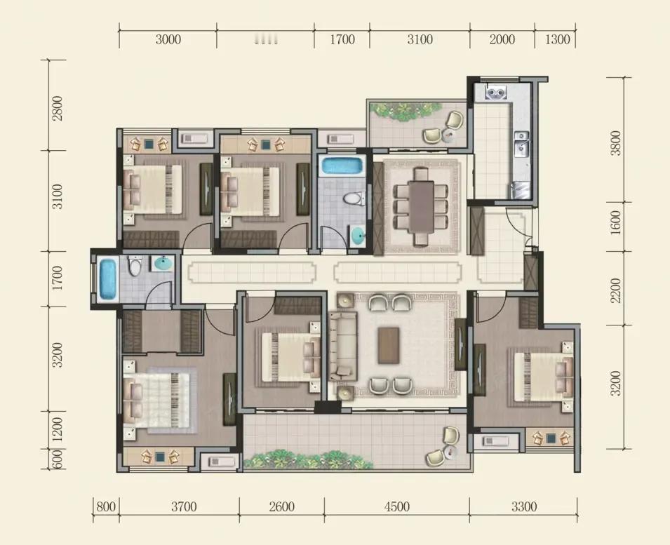 就爱这种通透感拉满的四房三卫,刚需改善一步到位! 餐客通厅无浪费空间,双阳台