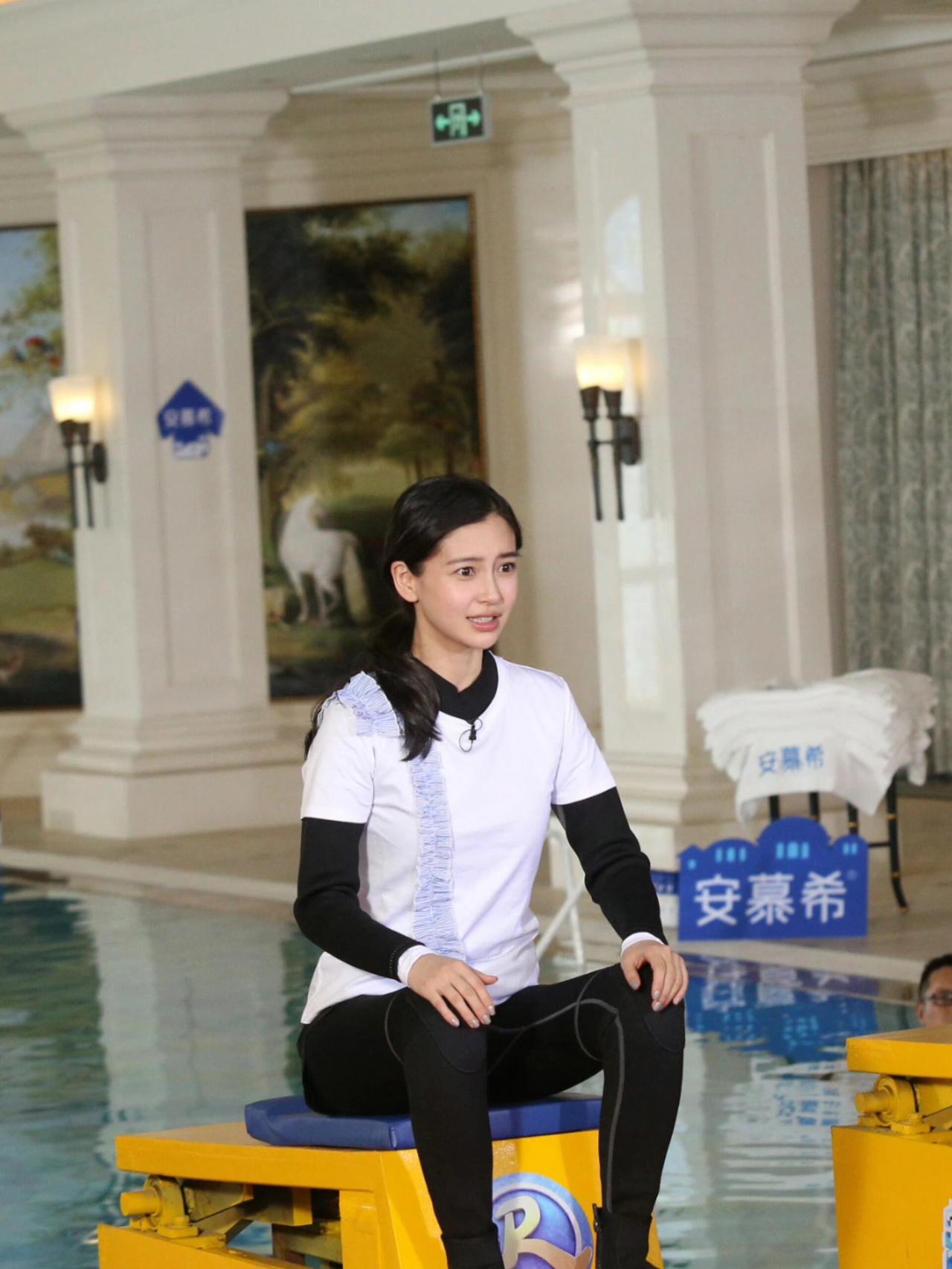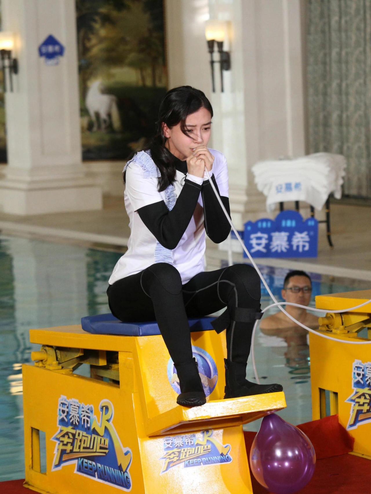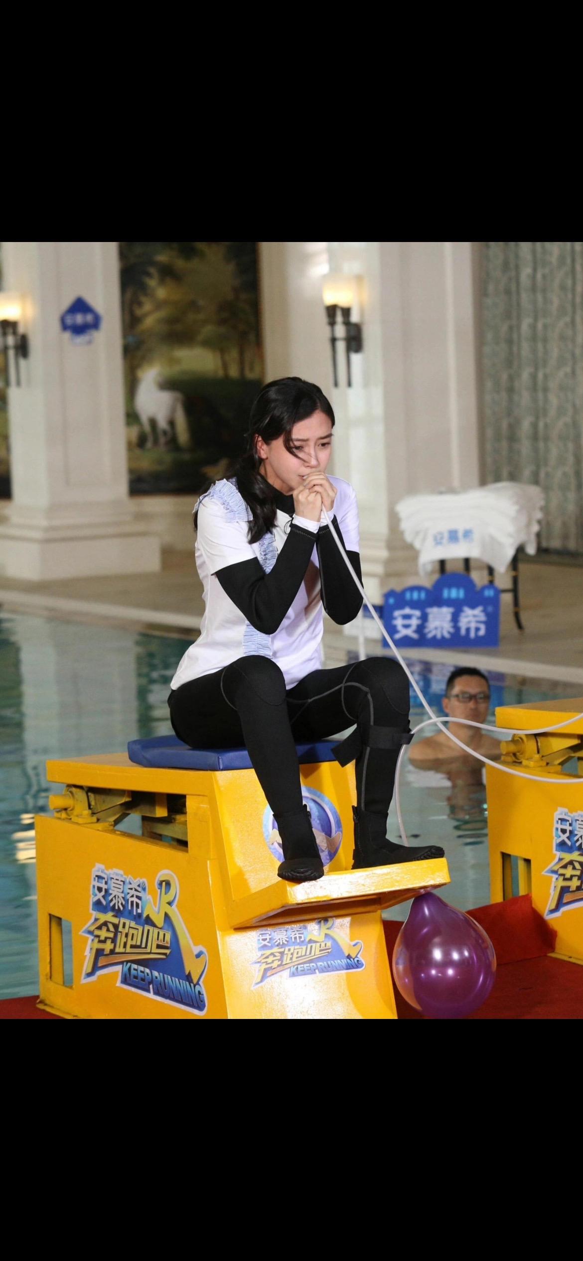 杨颖用力吹管子,憋红了脸!杨颖 这谁顶得住啊 泳池美女 综艺节目