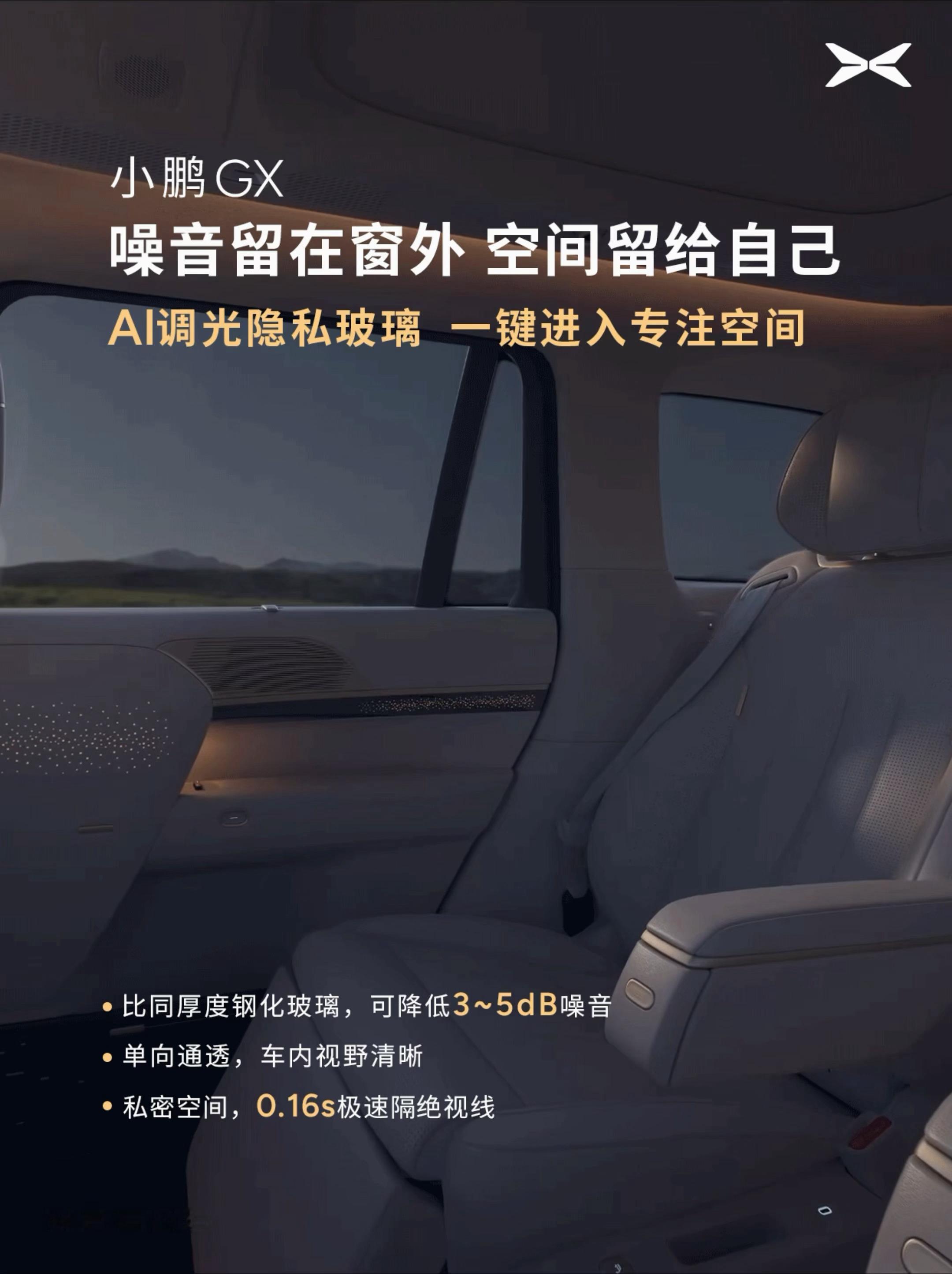 小鹏GX发布全球首个AI调光隐私玻璃小鹏GX联手福耀造全球最好的AI隐私玻璃没错,小鹏GX原厂 AI调光隐私玻璃,就是为 全场景舒适 而生的“黑科技”: