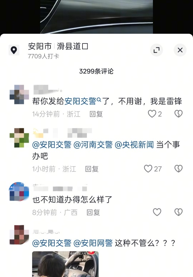 视频定位显示事发地位于安阳市滑县道口,发布账号IP属地也显示为河南,在评论区,网民们纷纷喊话安阳交警介入处理。