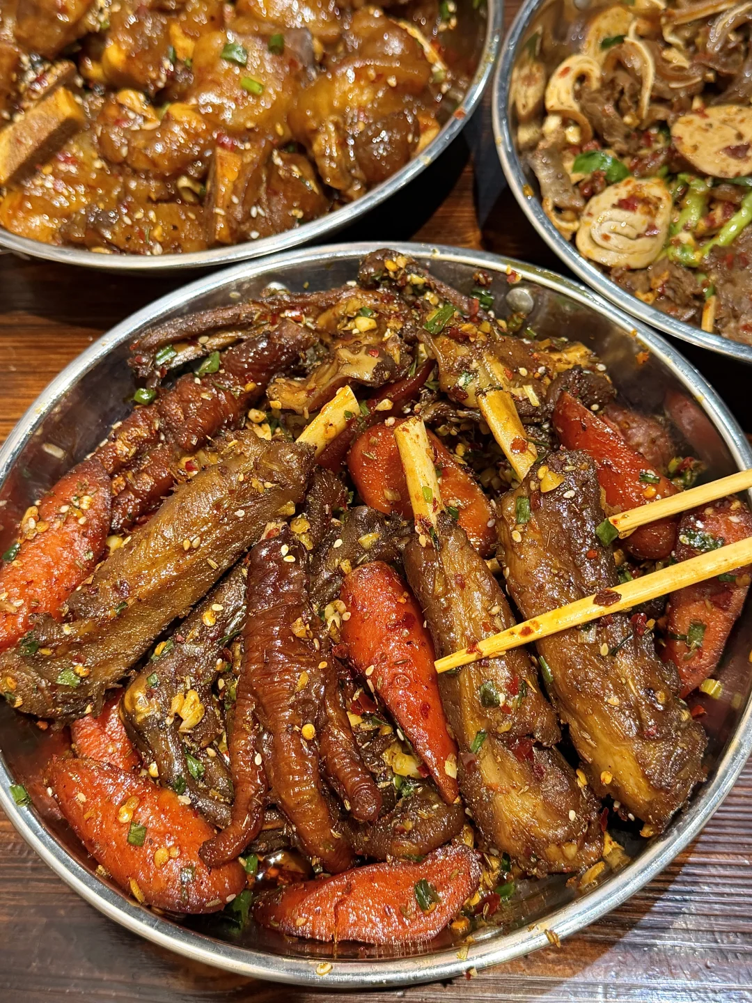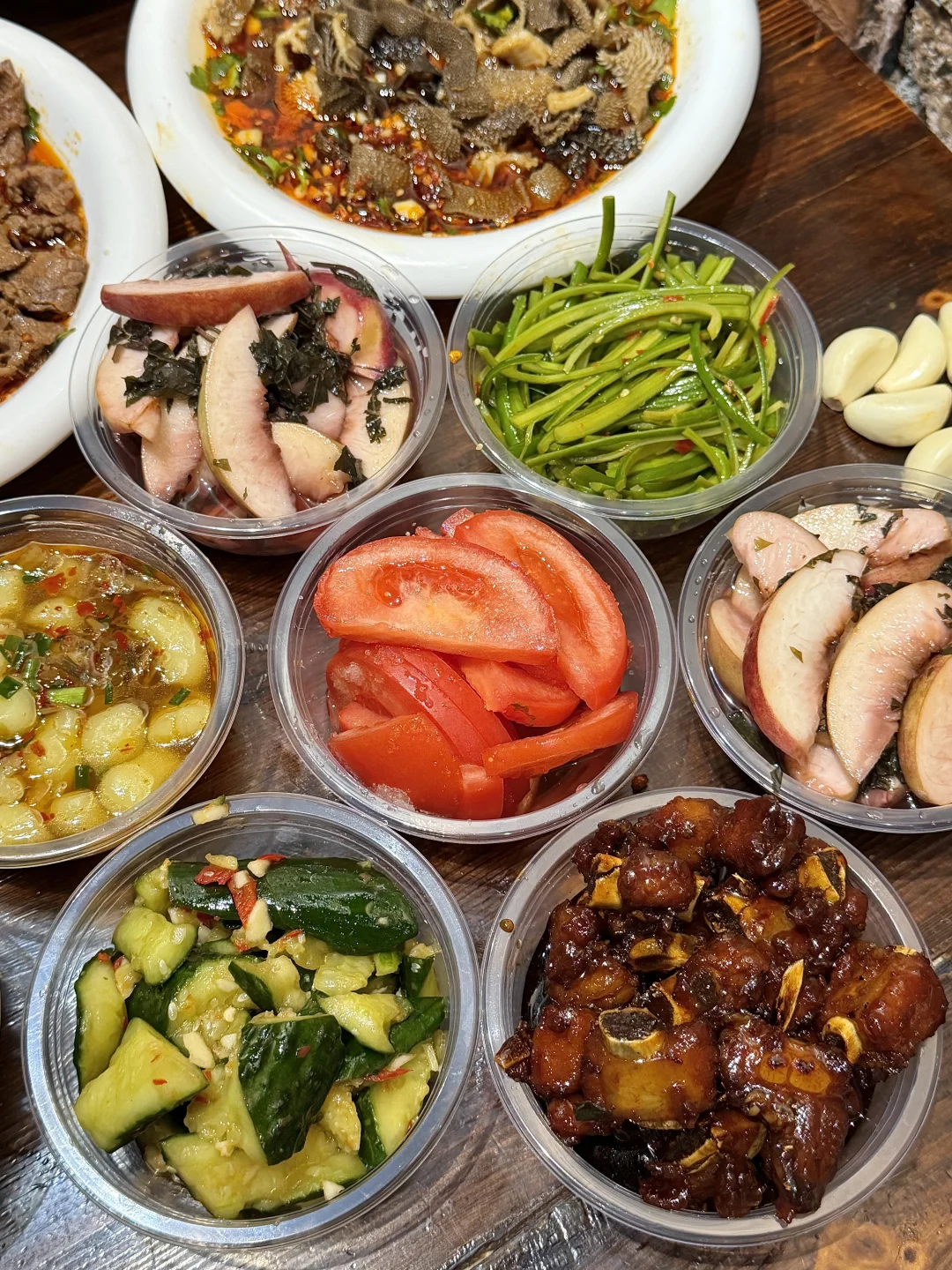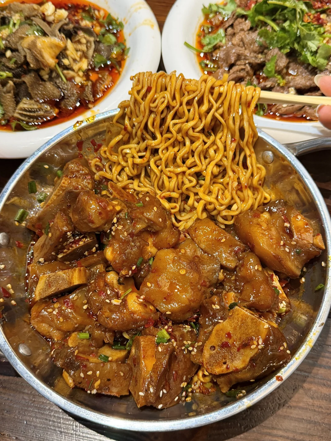 服了!他家就没有一个难吃的菜~均价10r也不贵!我们五个人点了满满一桌全吃光了!!推荐寸骨、蹄筋火鸡面、……随便点都不踩雷!吃完辣的记得再来份紫苏桃子😭😭爽脆多汁好好吃!一份才几块钱真心便宜!这么平价又好吃的本甜品脑袋很难不爱