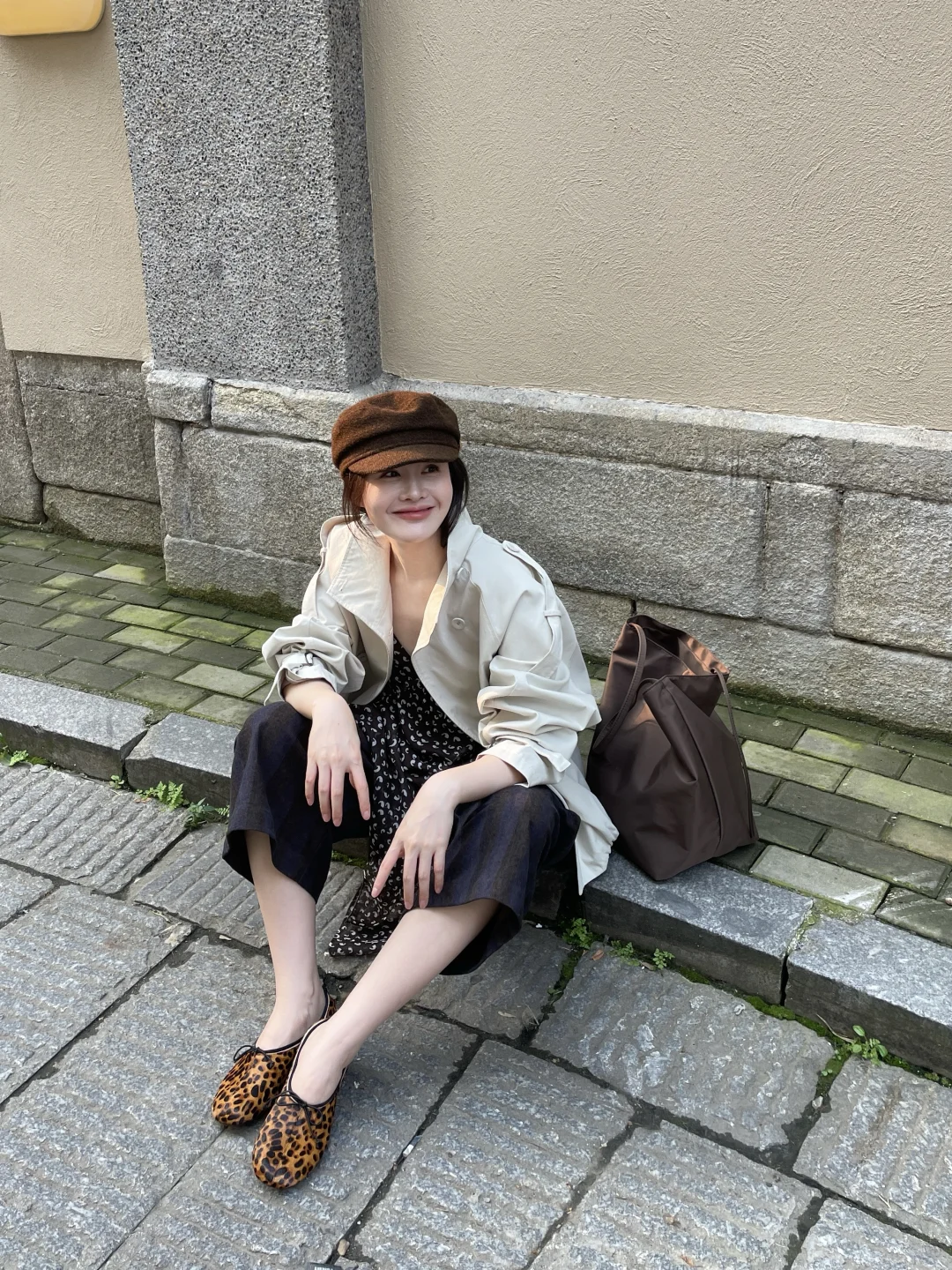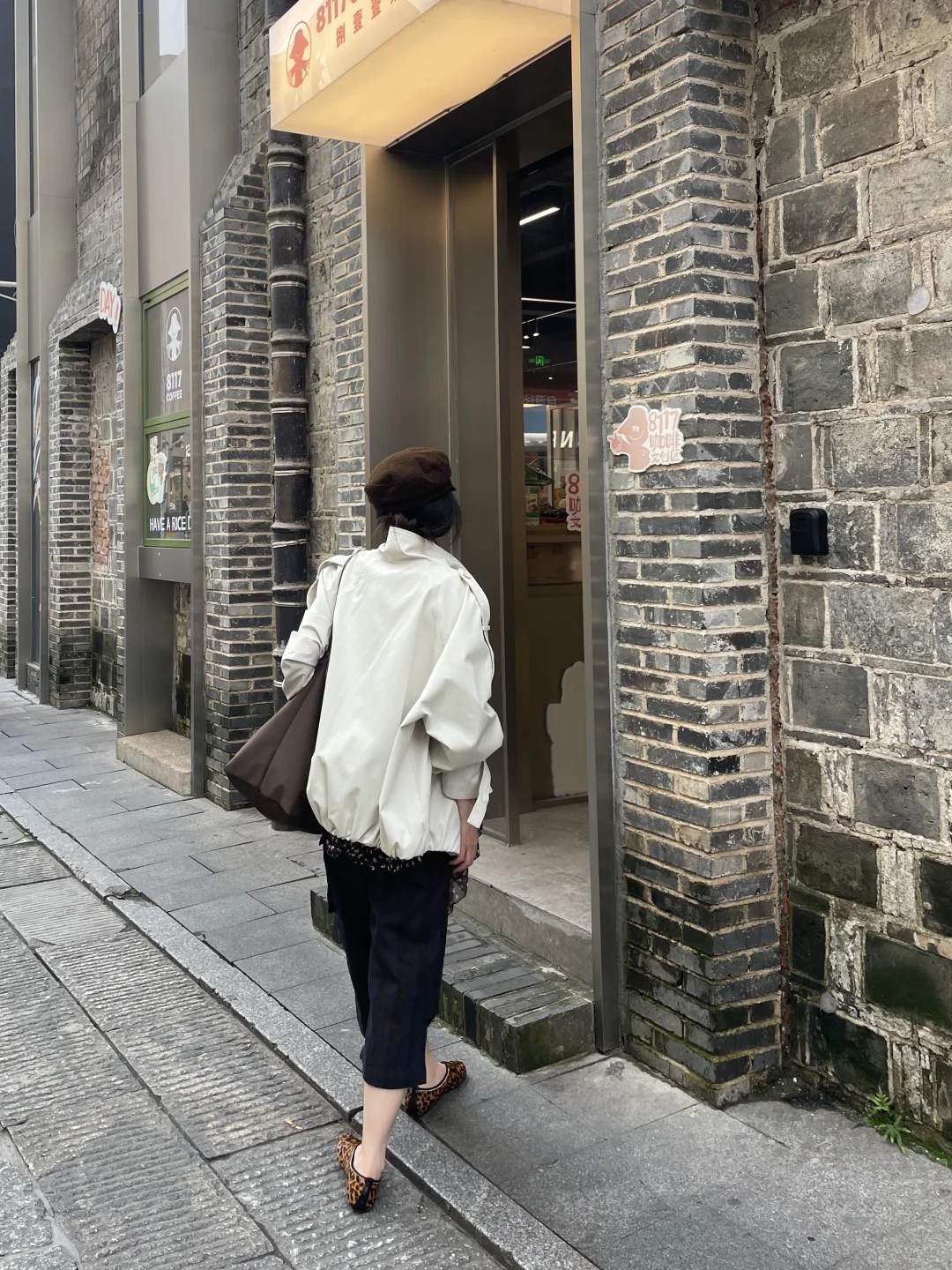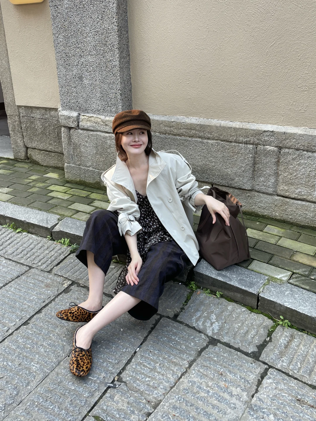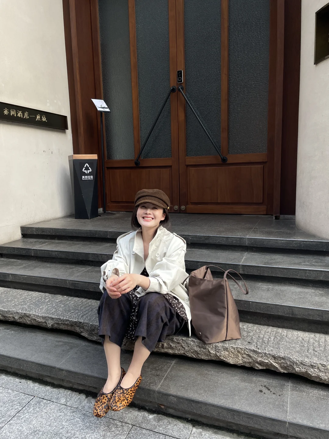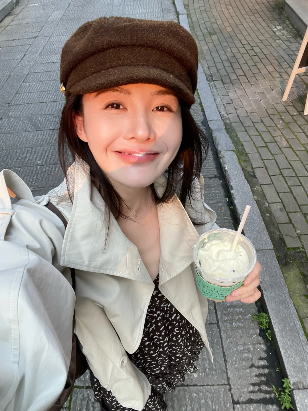雨后的石板路泛着清润的光,她就站在那里,一身浅蓝色喇叭牛仔裤,把利落与温柔揉得刚