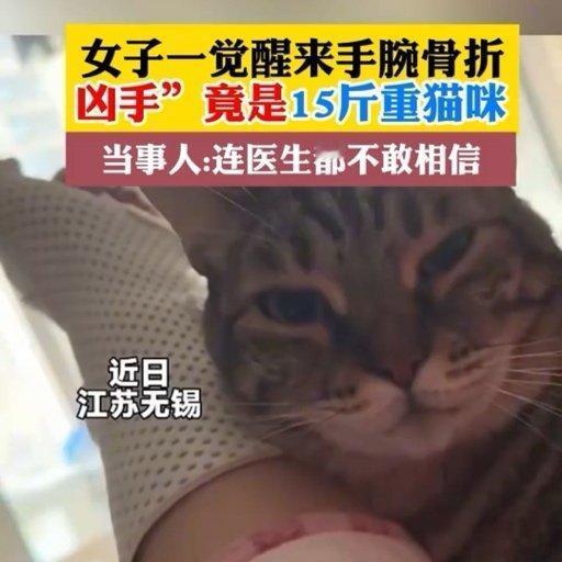 江苏无锡的陈女士太惨了,好好睡一觉,居然被自家15斤的猫咪压到手腕骨折。这猫平时黏人可爱,晚上爱枕着她手臂睡,事发那晚也照旧趴在她左臂,她没在意就睡了一整晚。