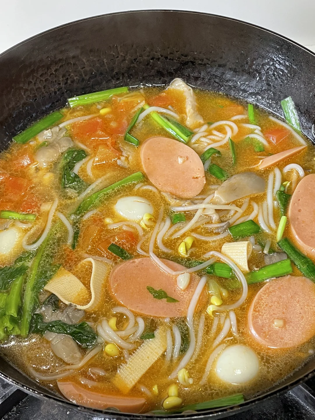 麻辣烫里最拉的菜自己煮吧,买两盒金针菇五块钱才放了一半,一包娃娃菜三个五块几毛钱