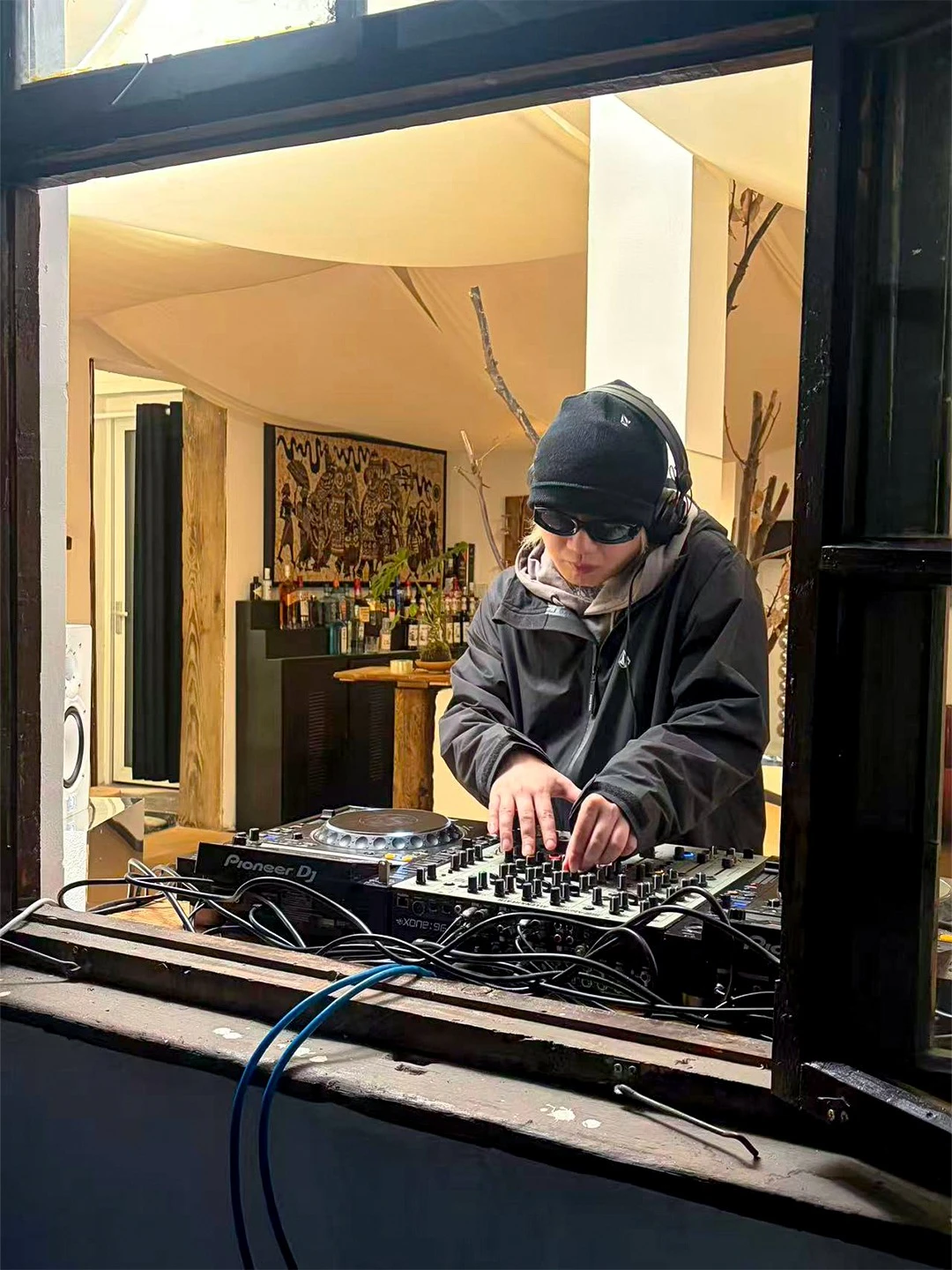 轻柔电子乐,在老木窗的框景里,