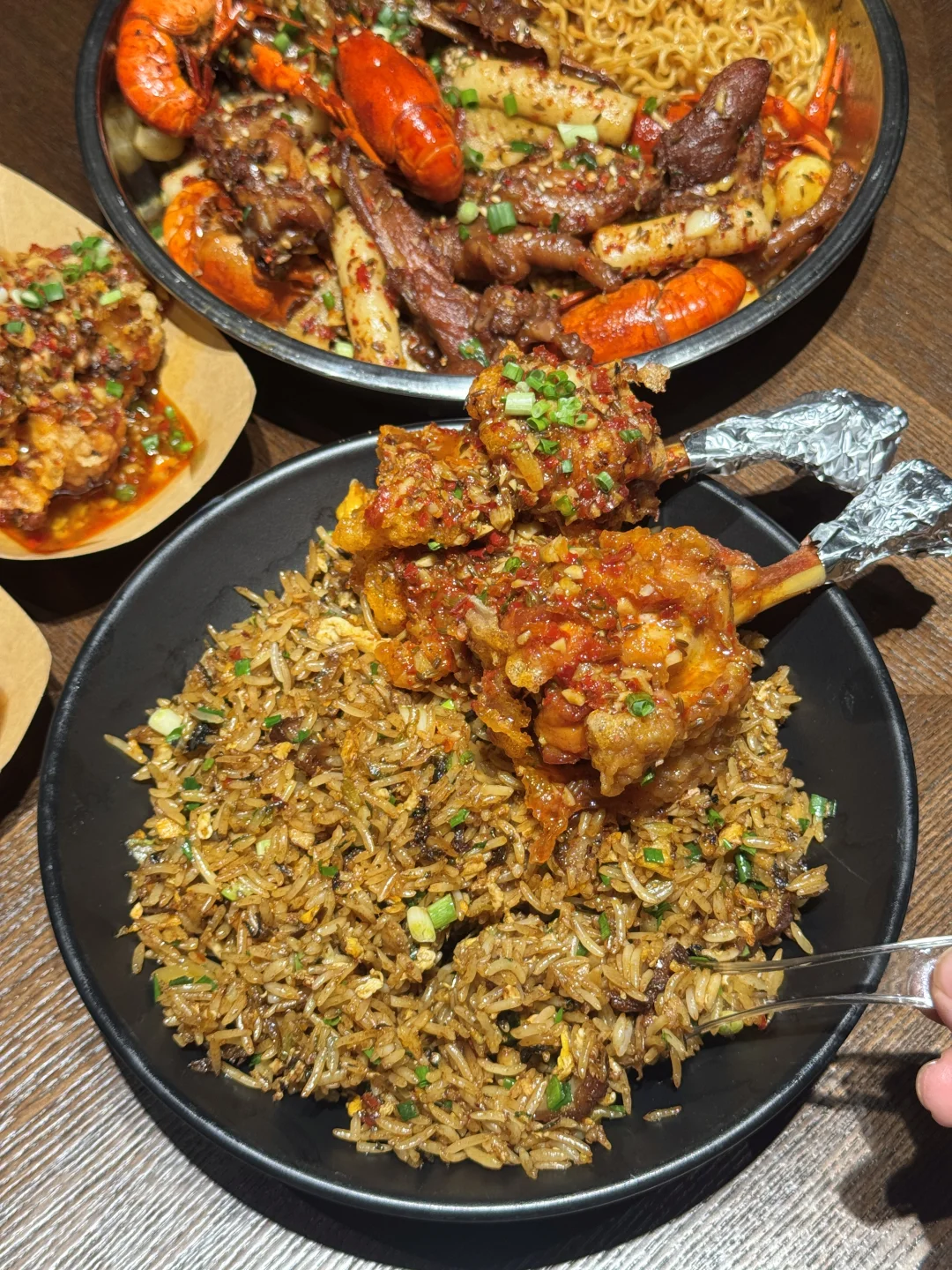一定要试试芥末虾球巨好吃!炼乳配上糯叽叽的现烤云朵年糕,卤虾卤炸拌面、玉米鸡翅一吃一个不吱声🥵🥵太适合我这种小吃脑袋啦!