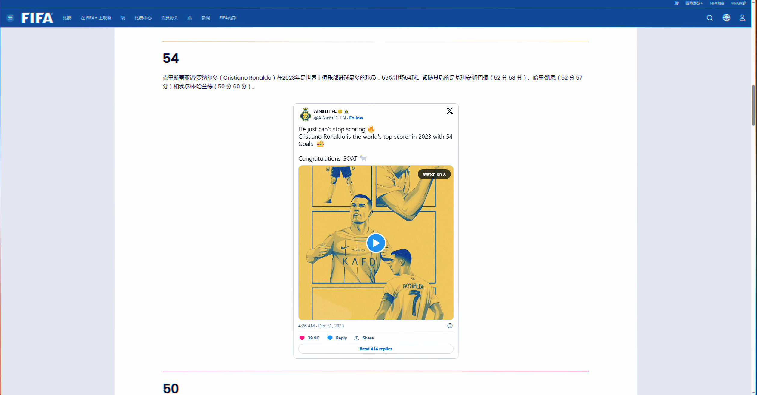 🔷 时至今日,德转仍然以国际足联不承认阿拉冠这项赛事为由继续坚持它们的观点。但是它们却拿不出来国际足联任何的明文规定和口头证据。我不知道它们从国际足联获得的评定标准究竟来自哪里,哪怕是现在被传删除C罗6粒进球的Sofascore在它自己的媒体区依然刊登着C罗打入生涯967球的报道。 专栏 · C罗时刻❷