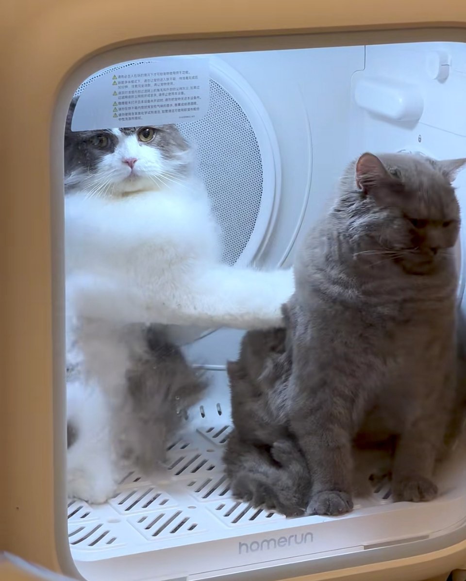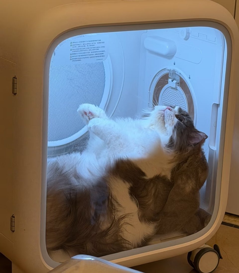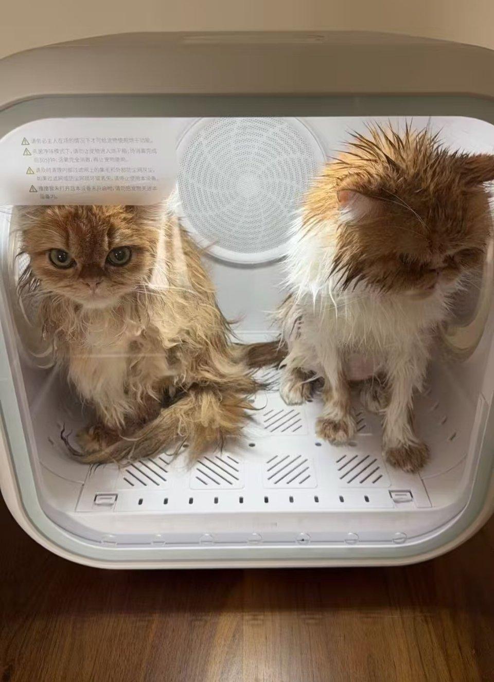同样都是洗澡吹毛,看看我家这俩腼腆型的,再看看人家豪放型的。