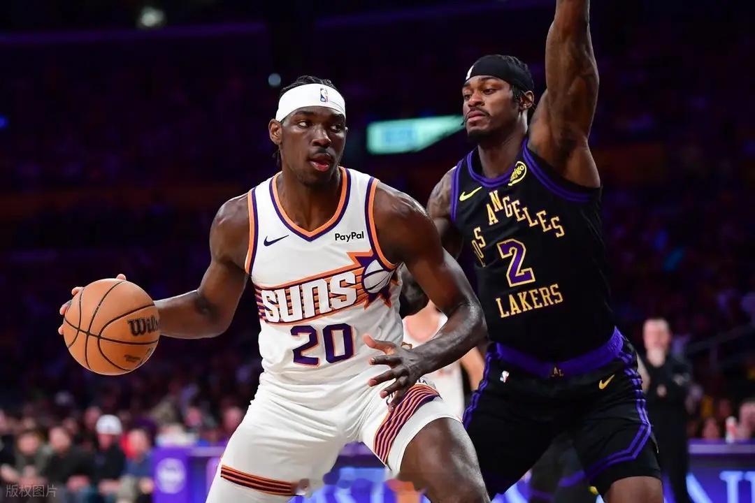 比赛进程詹姆斯通过外线三分球、罚篮连连取分,但太阳进攻端多点开花,双方开局阶段战成10-10平。随后一个时段,詹姆斯延续火热状态内突外投连连摘分且肯纳德打成3+1,湖人凭此轰出得分高潮建立16分领先优势。节末,太阳尝试策动反击,但肯纳德再度命中三分球助湖人稳住局势。首节结束,湖人领先10分。进入次节,湖人手感遇冷,太阳抓住机会策动反击连续命中三分球凭此轰出一波13-2扭转局势反超1分。湖人及时唤回状态,肯纳德连连出手命中助湖人夺回领先优势,当艾顿补篮得分,湖人领先8分。节末,双方通过跳投、罚篮交替取分。半场结束,湖人57-48领先太阳9分,詹姆斯半场10投8中独揽22分,阿伦伤退。