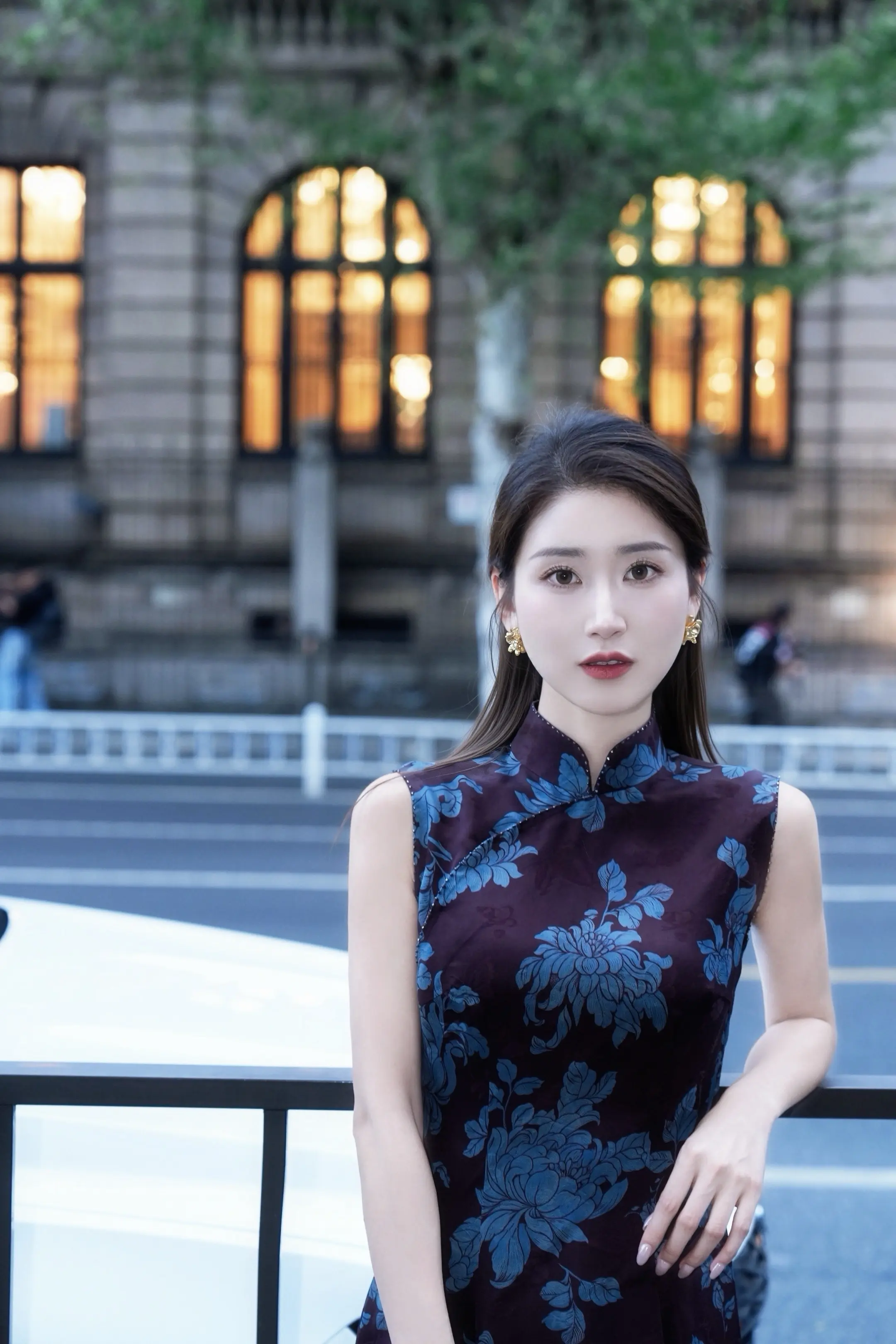 一袭旗袍,勾勒出东方的优雅与柔美。裙摆上的花卉图案,仿佛是春日里绽放的花朵,诉说