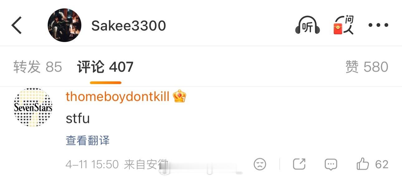 不忍了!Thome被Sakee连续怼后,直接在评论区让Sakee闭嘴:stfu!