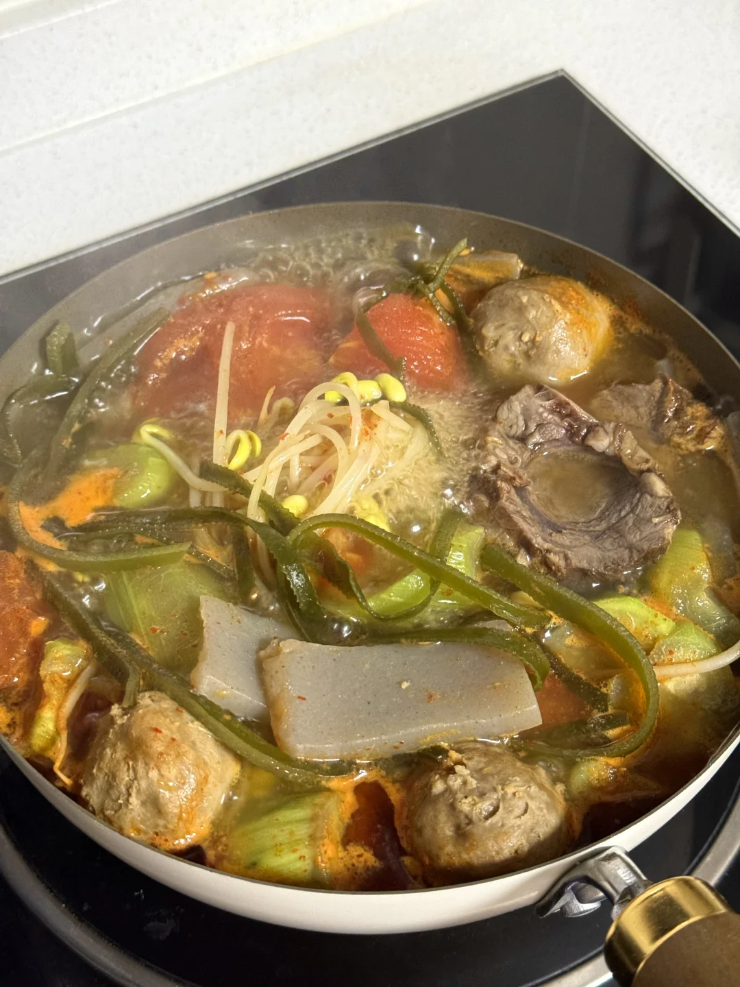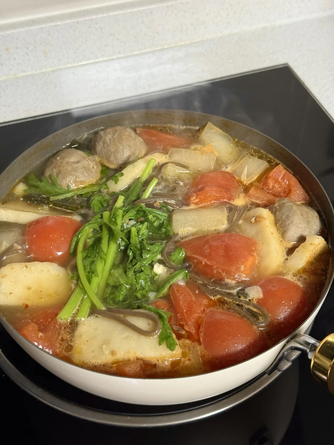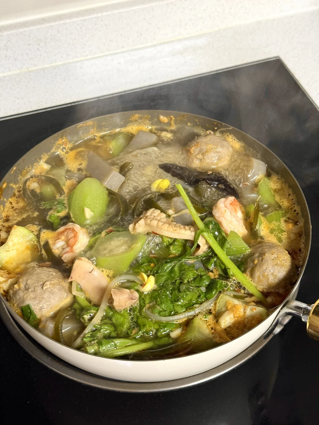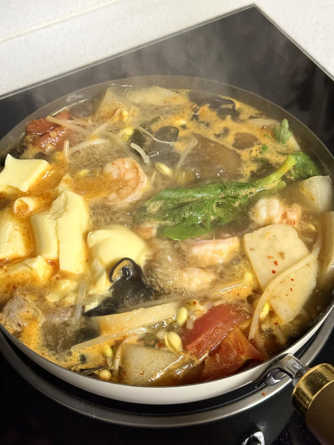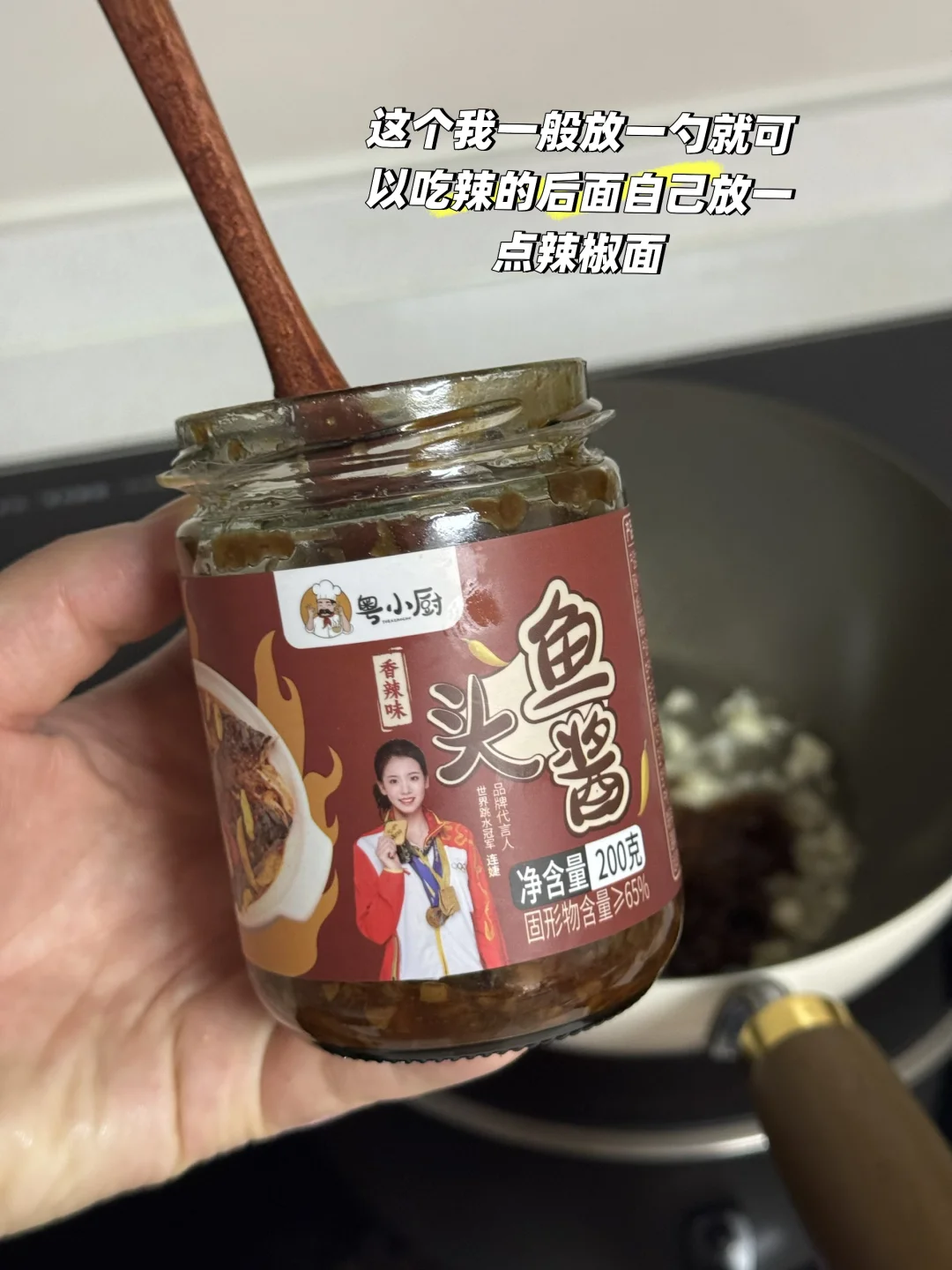 这一锅下去基本不会饿了,我是一勺剁椒鱼头酱炒香加适量水然后一丢丢薄盐生抽喜欢的食材适量盐鸡粉就可以了你们可以试试