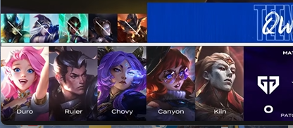 GEN选用:Kiin亚恒、Canyon赵信、Chovy兔子、Ruler芸阿娜、Duro歌姬