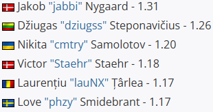 目前,Astralis选手jabbi以1.31Rating稳居第一,FUT选手dziugss以1.26Rating紧随其后。