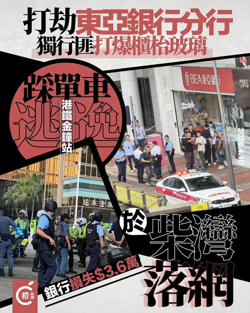 香港 打劫银行,踩单车逃逸,损失3.6万港元