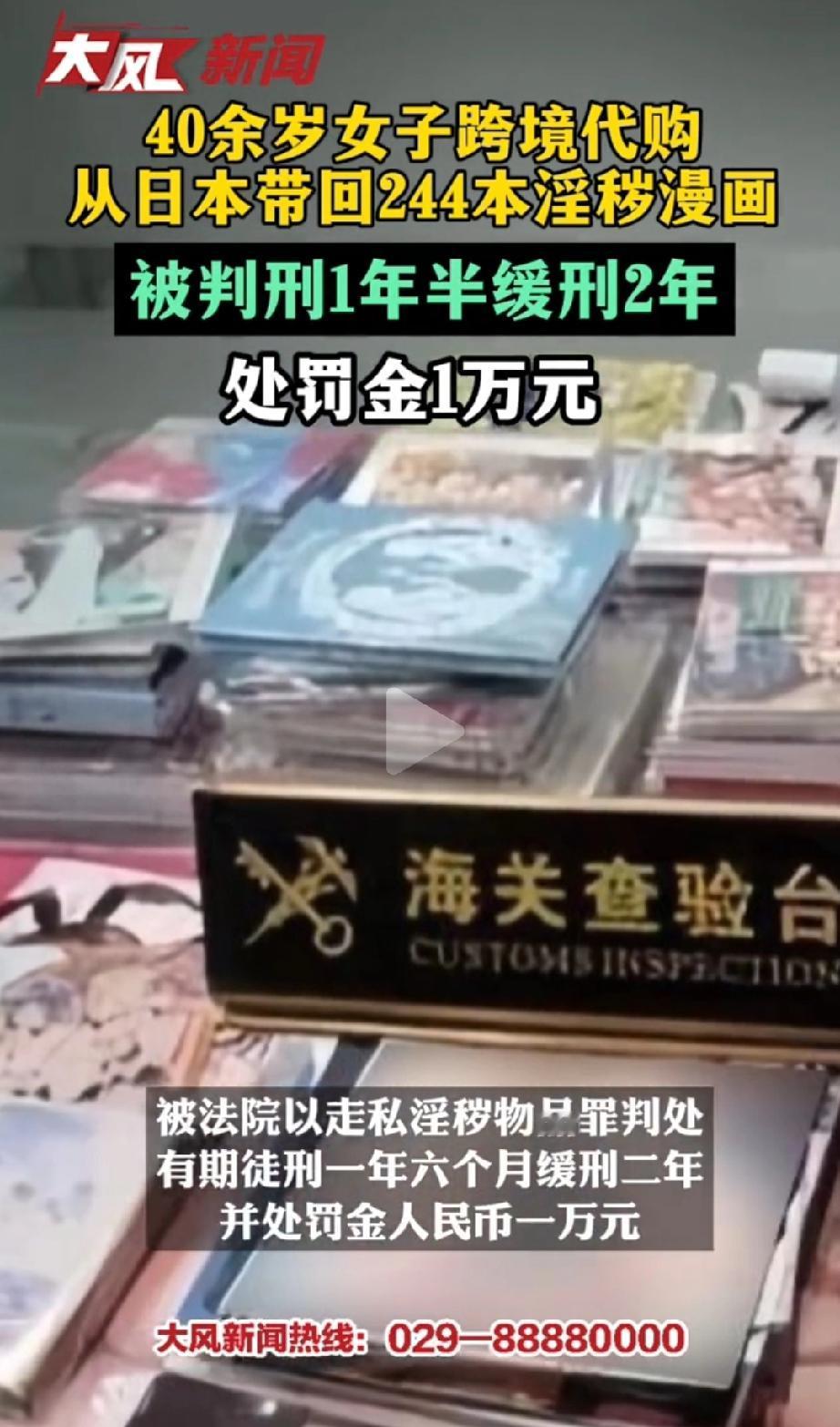大开眼界!40多岁的汪大姐,在日本工作,兼职做跨境代购,专门帮人买日本限定漫画、玩具等,没有想一开箱,两大箱子全是标着"十八禁"的漫画,露骨得很 。网上直呼:赚点代购费,怎么就坐牢了?