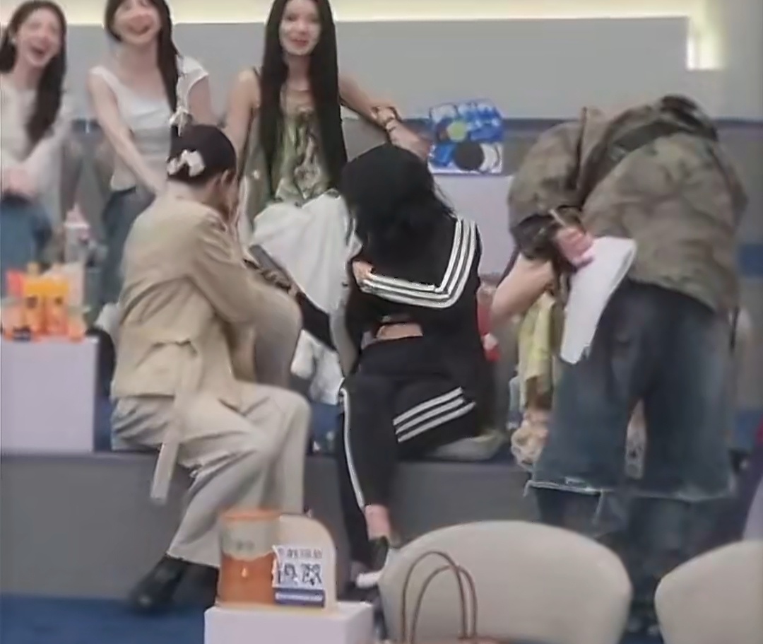 结果被工作人员上前提醒后,秒速把腿放下来乖乖坐好,整个人瞬间从“放飞自我”切换成“乖巧小学生”模式。