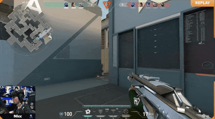 第十七回合,Nicc一人顶住拐角三人,Flex1n收下最后一人拿下分数