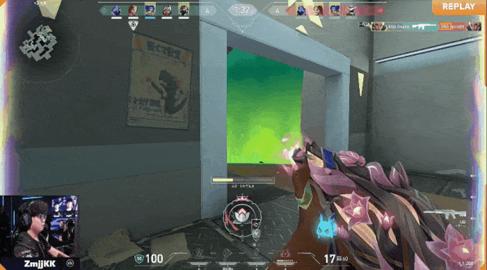 第九回合,ZmjjKK果断顶入,火力全开在二楼拿下四杀
