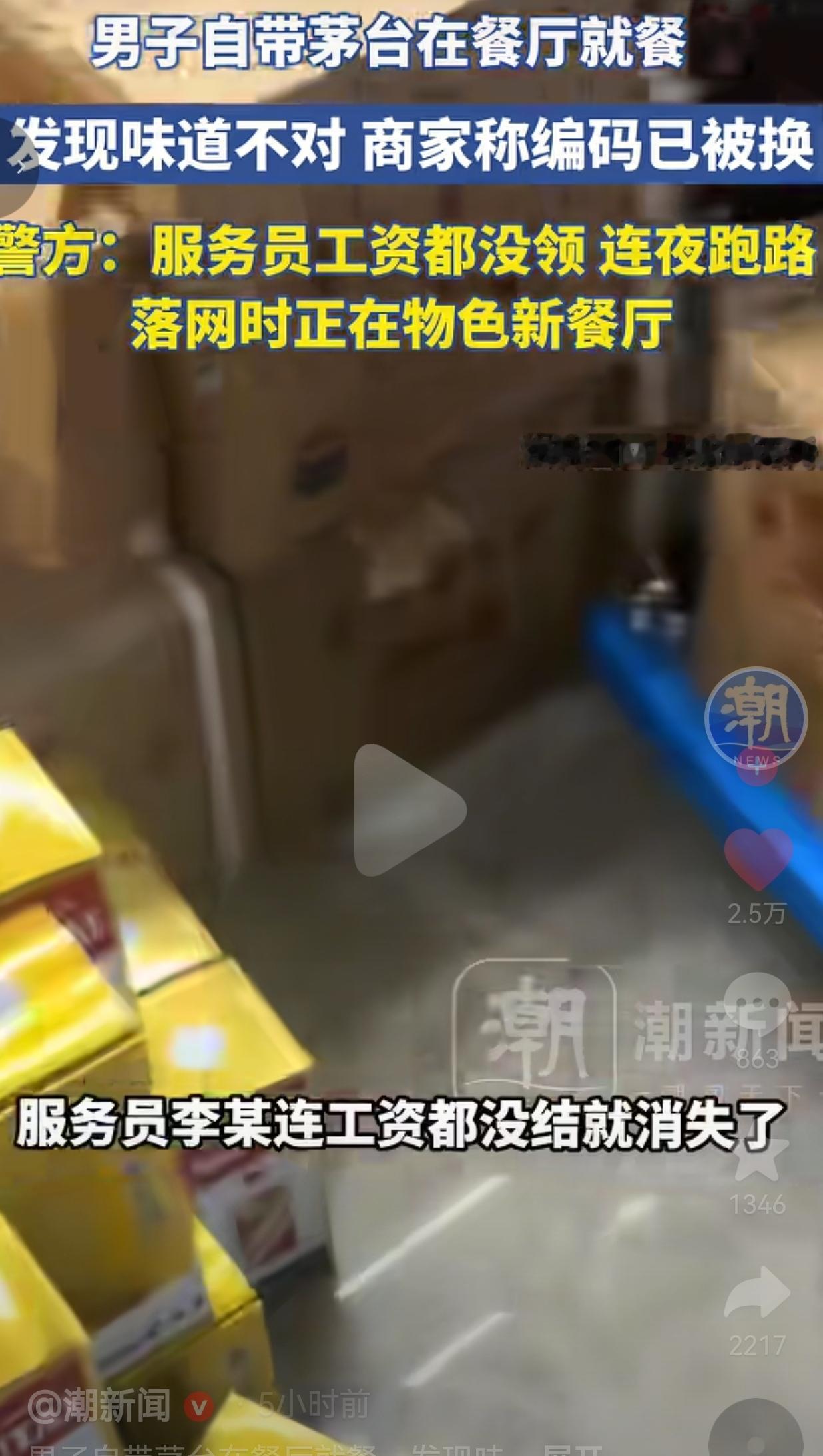 太缺德了!男子自己带两瓶好好的飞天茅台去吃饭,喝一口味道不对,一查居然被服务员给调包了!