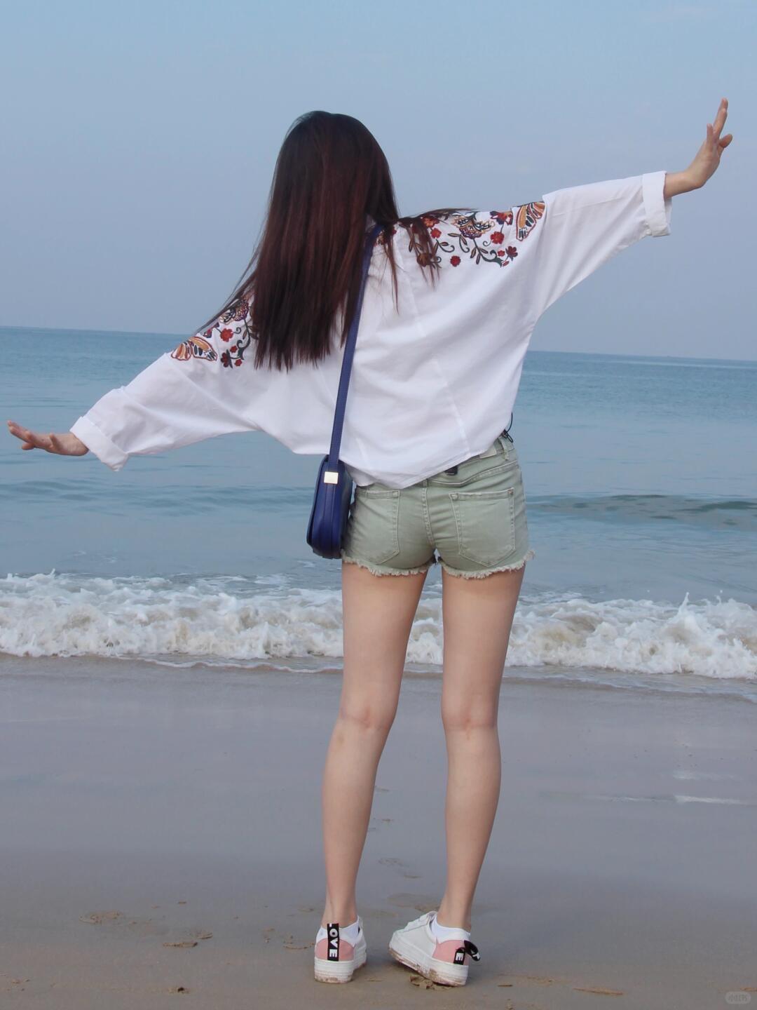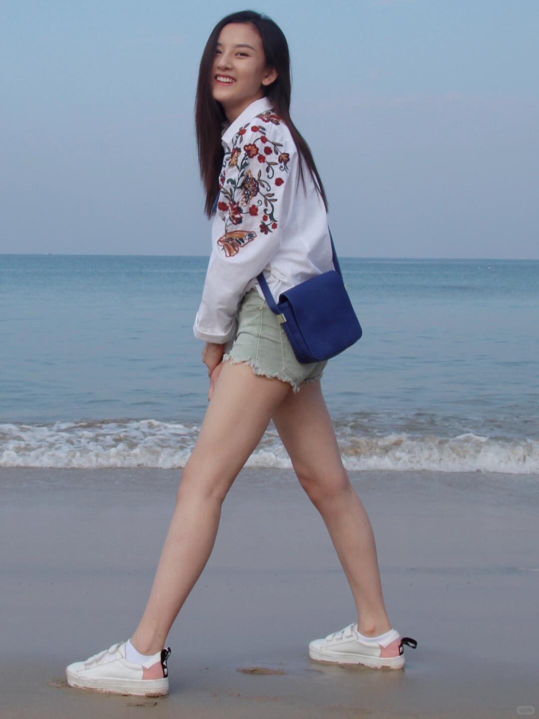 宋祖儿,海边穿搭!宋祖儿 短裤穿搭 白色衬衫搭配短裤 沙滩穿搭