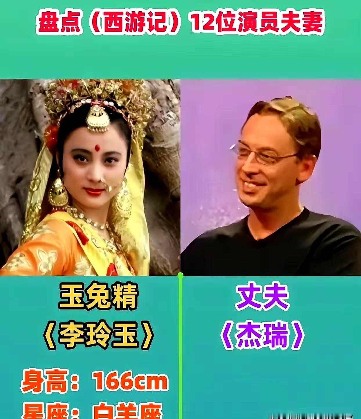 演玉兔精的李玲玉也挺有个性。她跟加拿大丈夫分居好多年,一个守在国内搞事业,一个在国外忙生意,儿子杰西都长到一米九了,感情照样稳当。