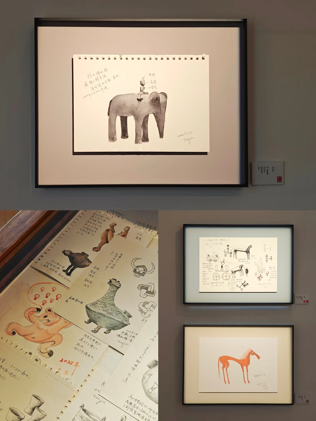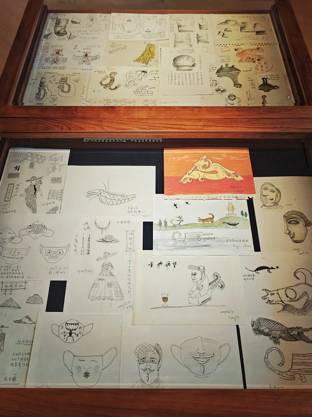 📝笔记里有严谨的考古坐标、器物编码,也有即兴的涂鸦、文创设计草图(比如印纹陶口罩、“良渚动物乐园”)。你能感受到一位学者在宏大叙事之外,保有的那份温润的私人闲情。考古不仅是发掘过去,也是一种充满生命感的、和古人及万物对话的当下行为。