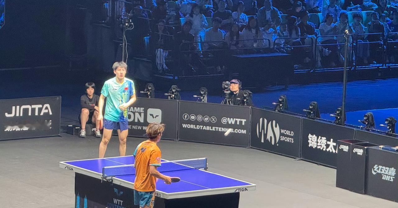 温瑞博🇨🇳的场外指导是徐辉,今晚小温吃了对手好几个发球,还好对方也好不到哪去。