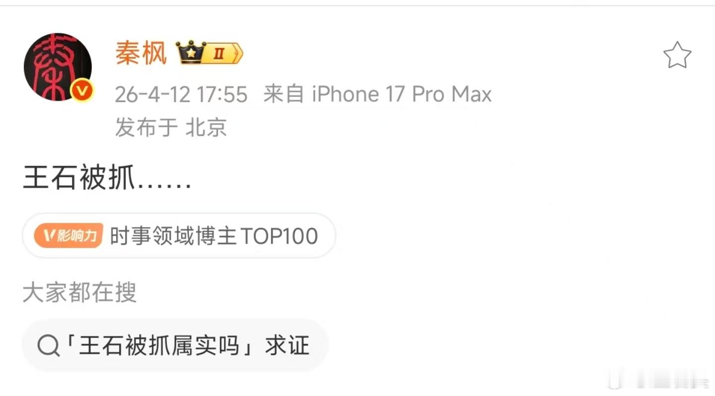 造谣王石被抓博主或被行拘 看来这两人,接下来可能有一个要被抓。