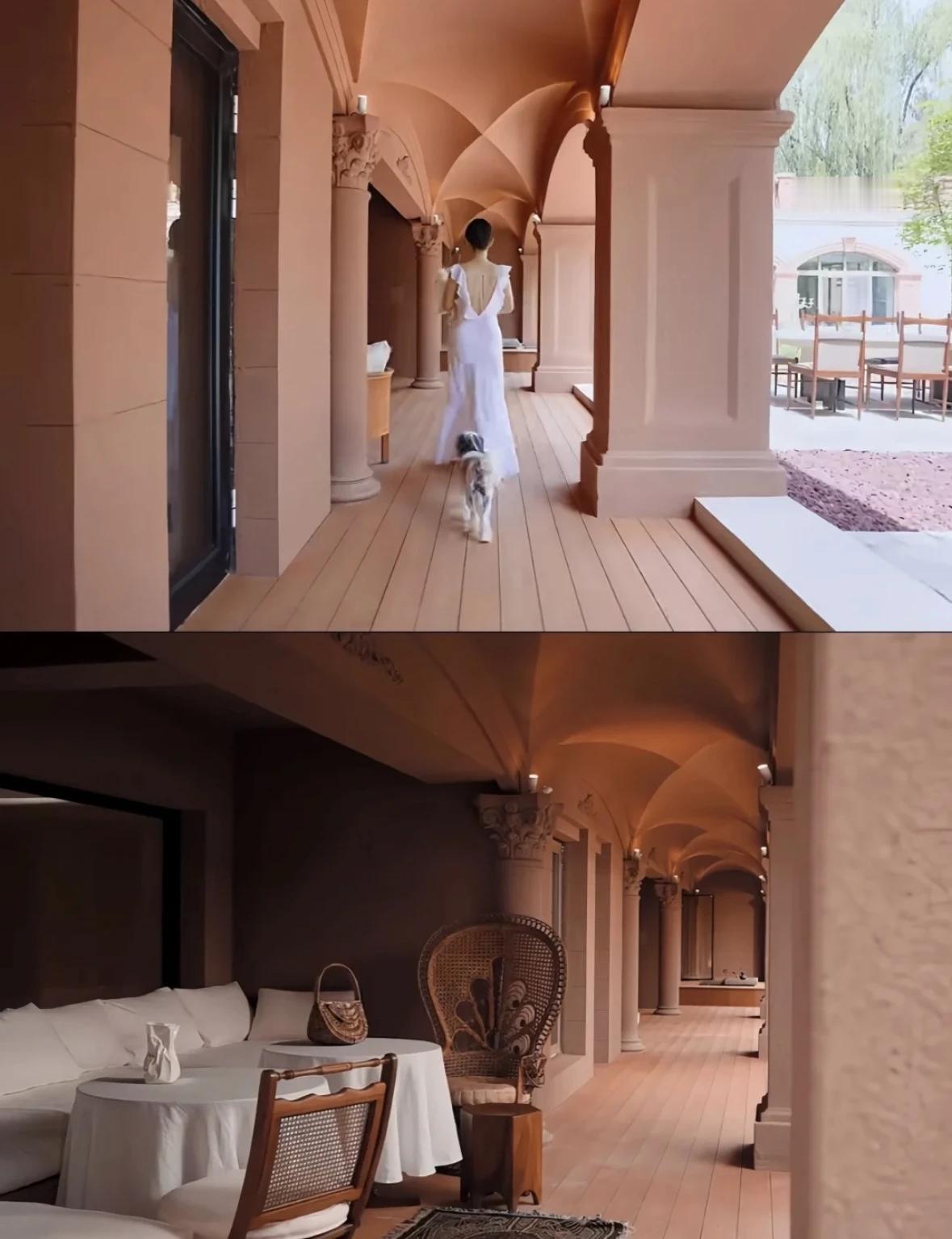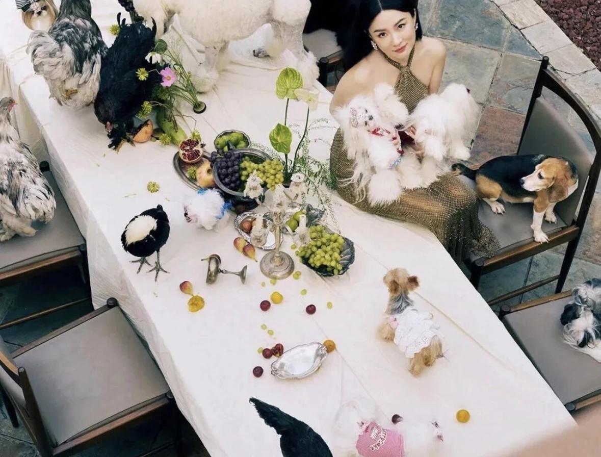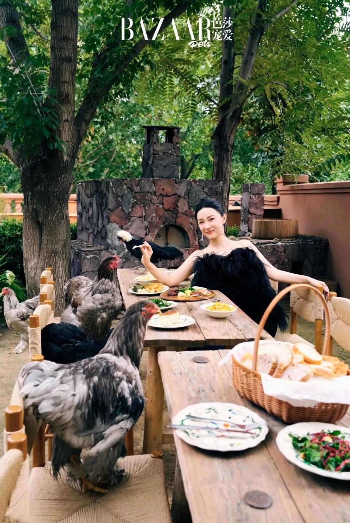 霍思燕住 3000 平大别墅, 不只是养了很多狗,还有孔雀,还有 11 只鸡。它的鸡是可以坐在桌子上一起吃饭的。看到这样的饭桌,真的是很田园,也很治愈。