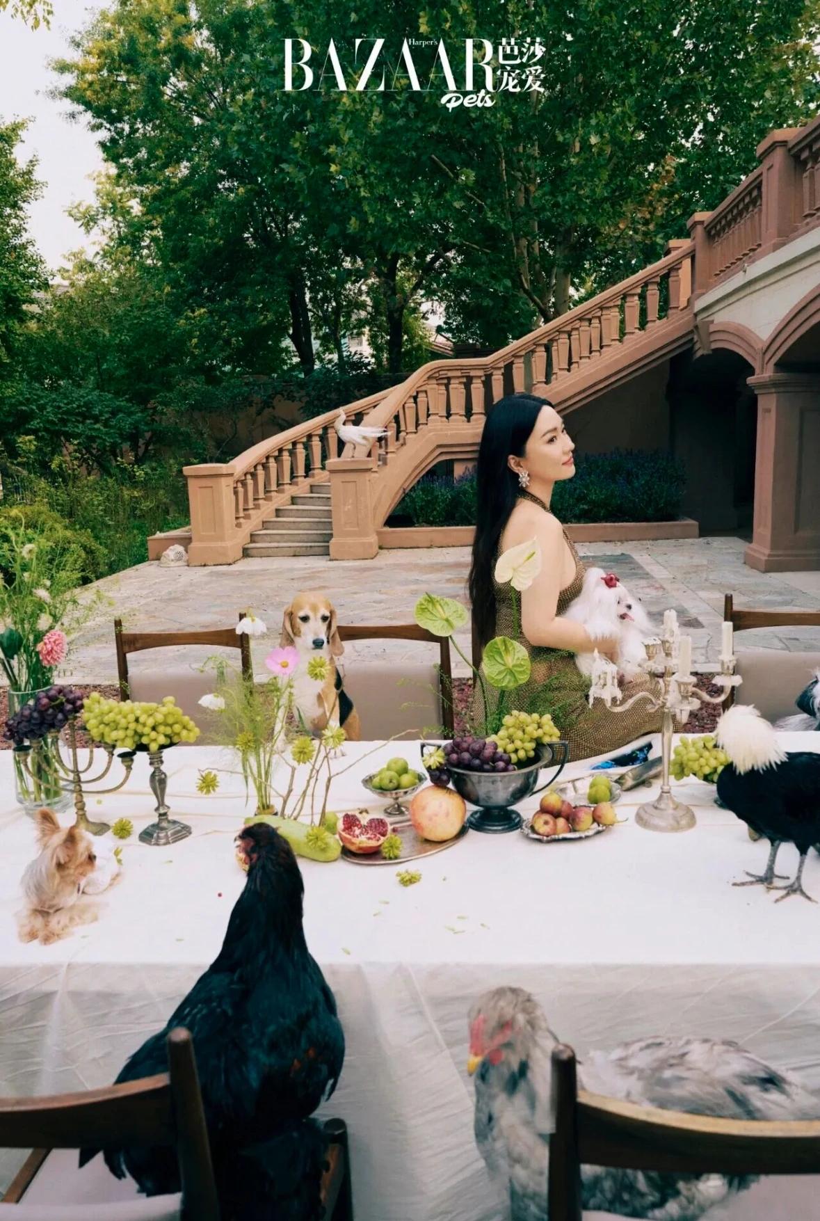 她在家里拍时尚杂志,随便一拍就是大片,哪个角落都很美。狗、鸡、孔雀,这就是霍思燕后半生的清醒与潇洒。