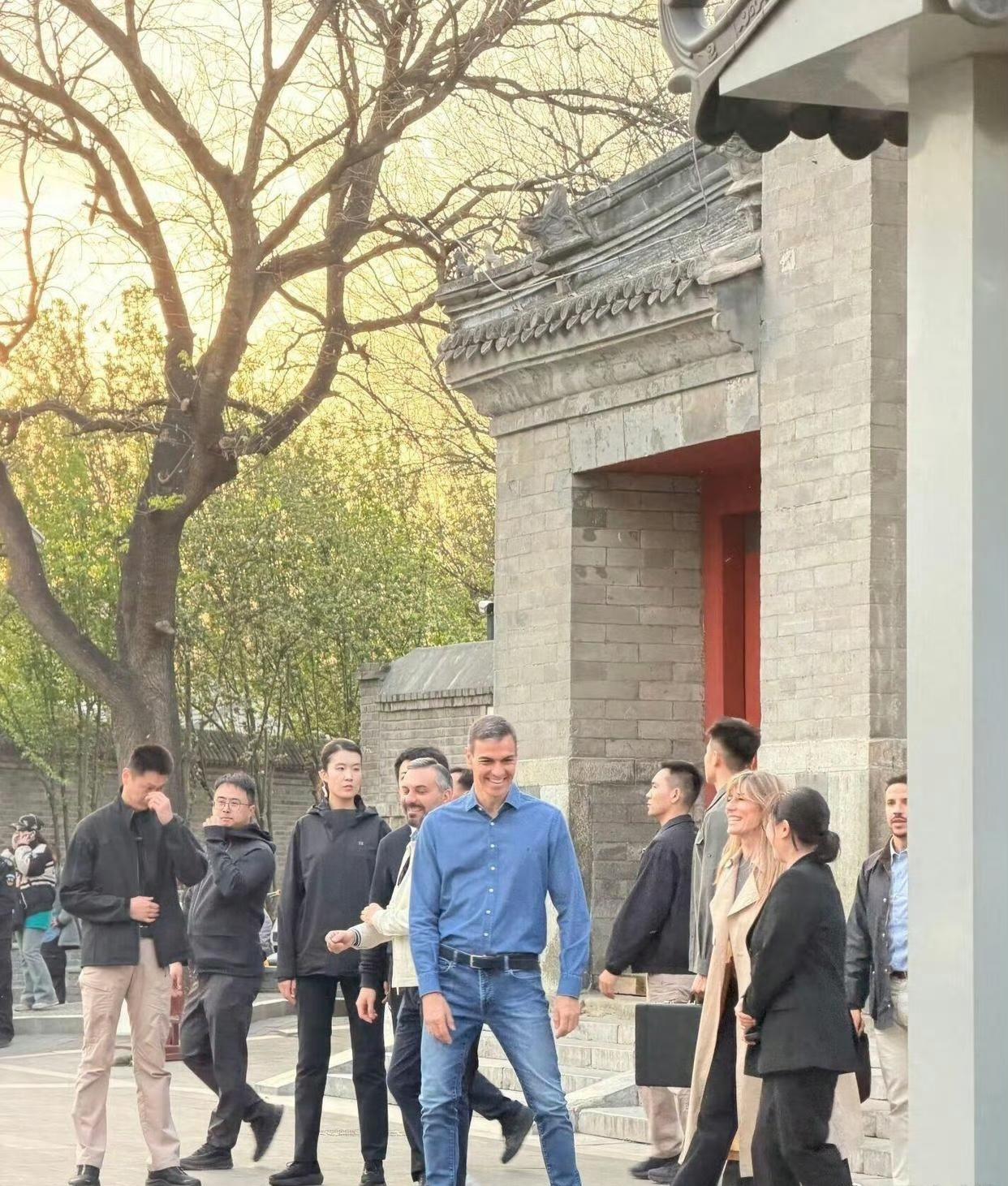 西班牙首相桑切斯在北京和夫人在私人行程中开启了非常低调且接地气胡同游, 完美融入了北京的市井与古韵之中。
