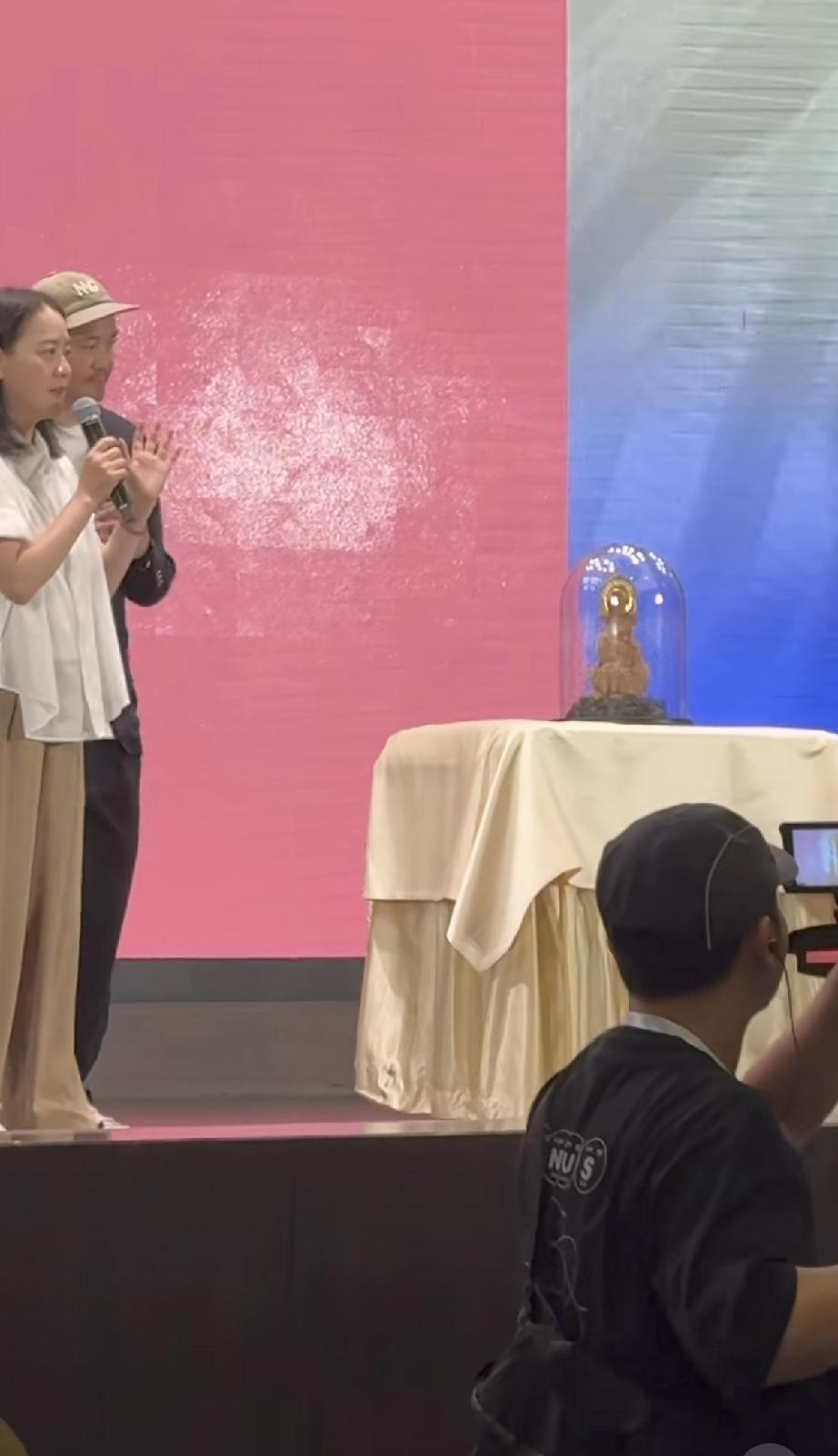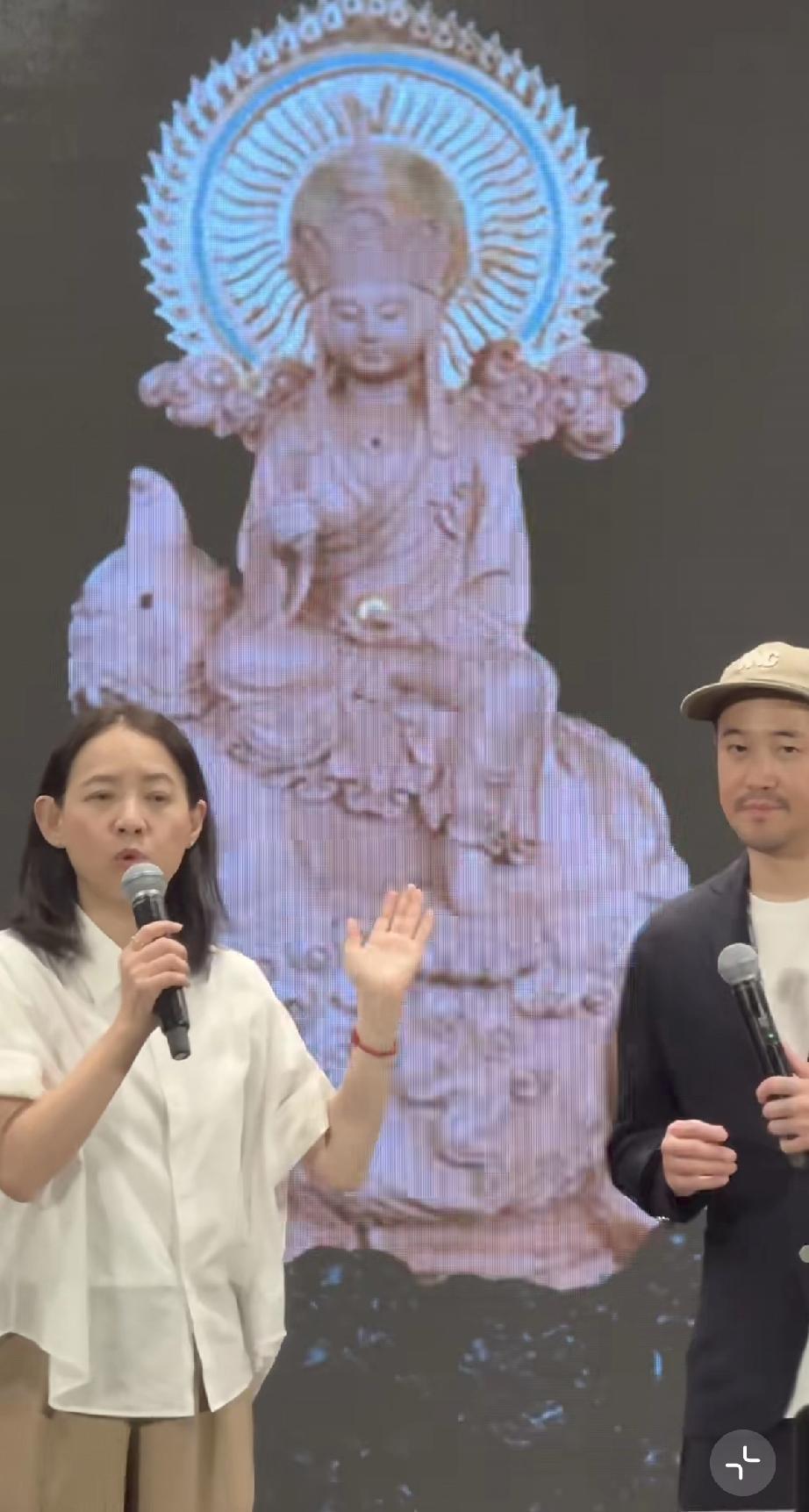 曾宝仪介绍,此次为了父亲庆生,专门请了寺庙里的地藏王菩萨雕像过来,曾志伟捧在手里,面相更慈祥了。