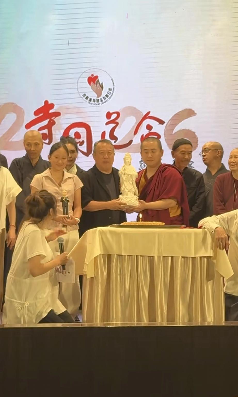 曾志伟庆贺73岁生日,请了寺庙的僧人,还专门请了一座地藏王菩萨的雕像捧在手里,由女儿曾宝仪主持,张耀扬等人现身捧场。