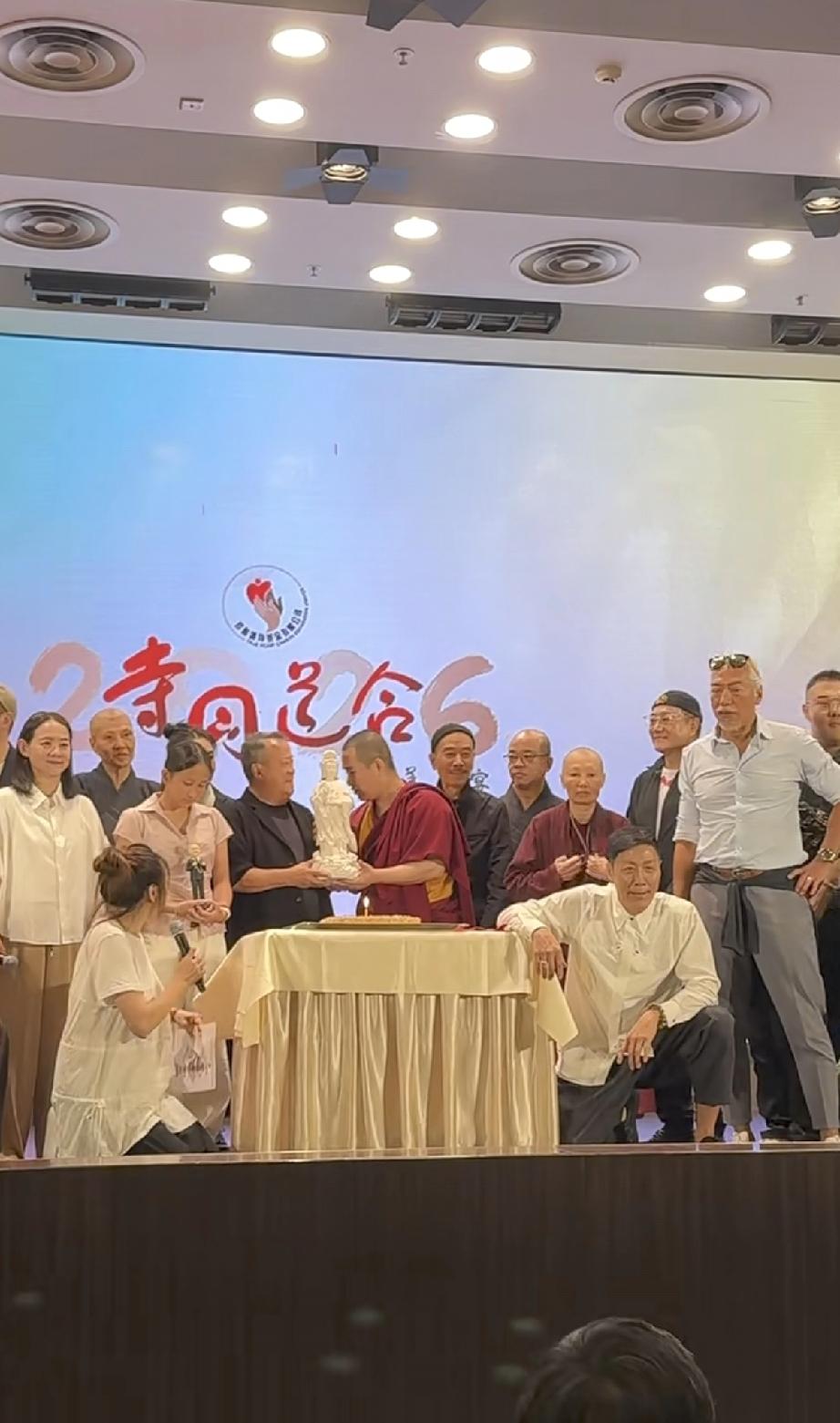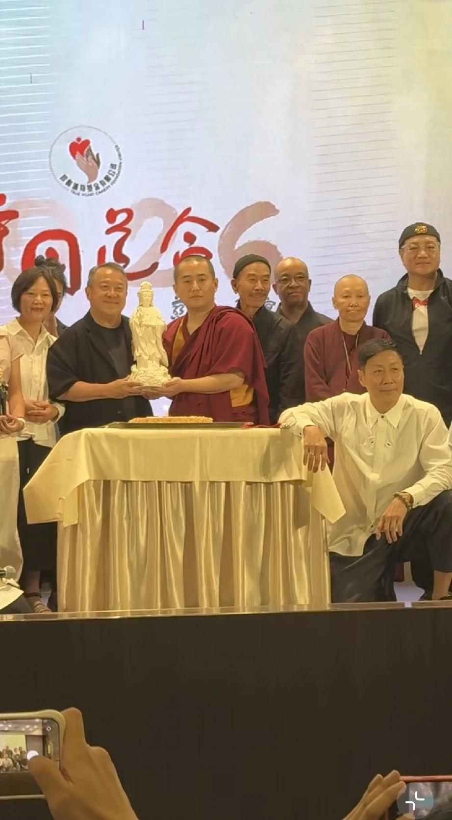 曾志伟庆贺73岁生日,请了寺庙的僧人,还专门请了一座地藏王菩萨的雕像捧在手里,由