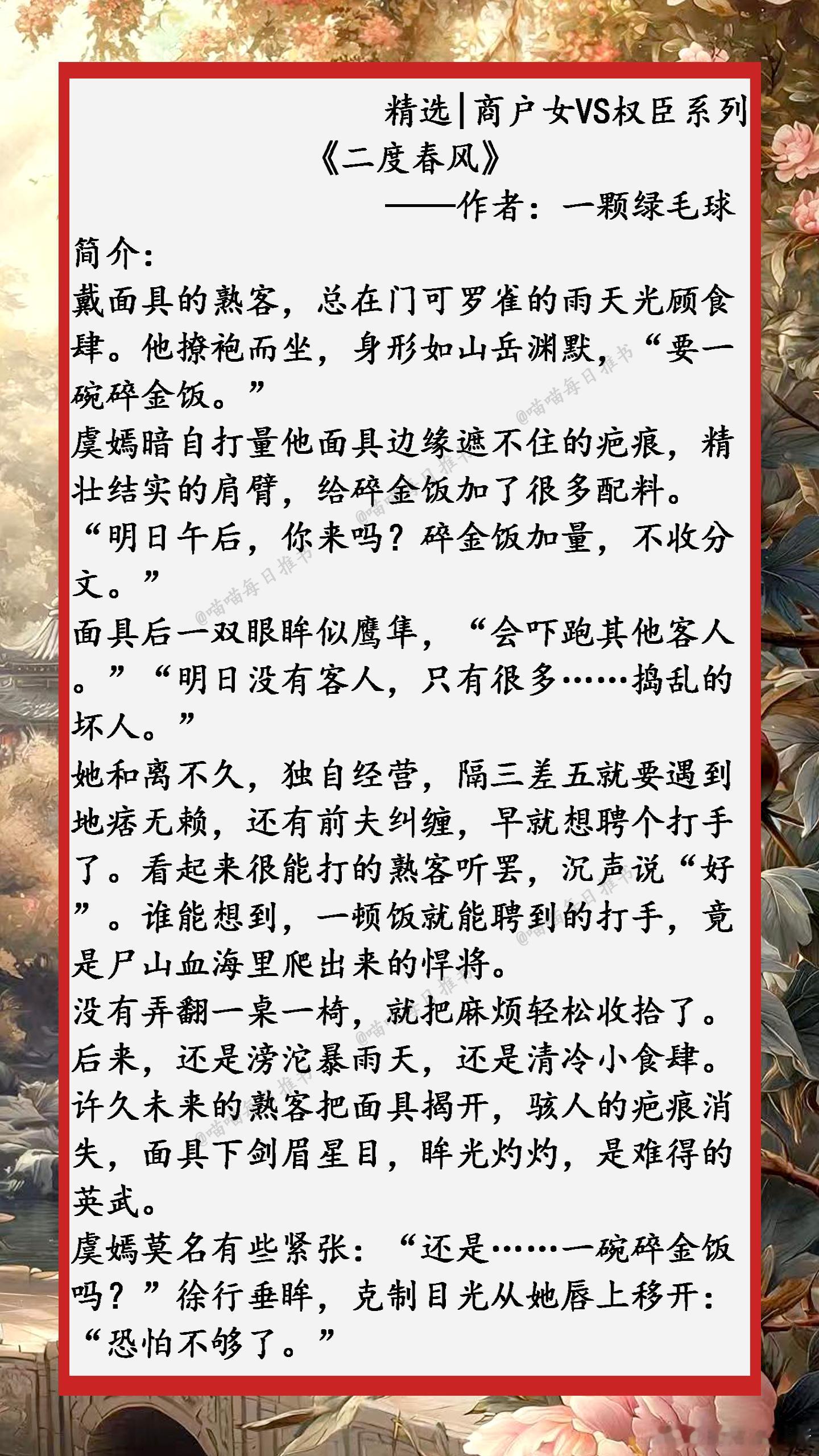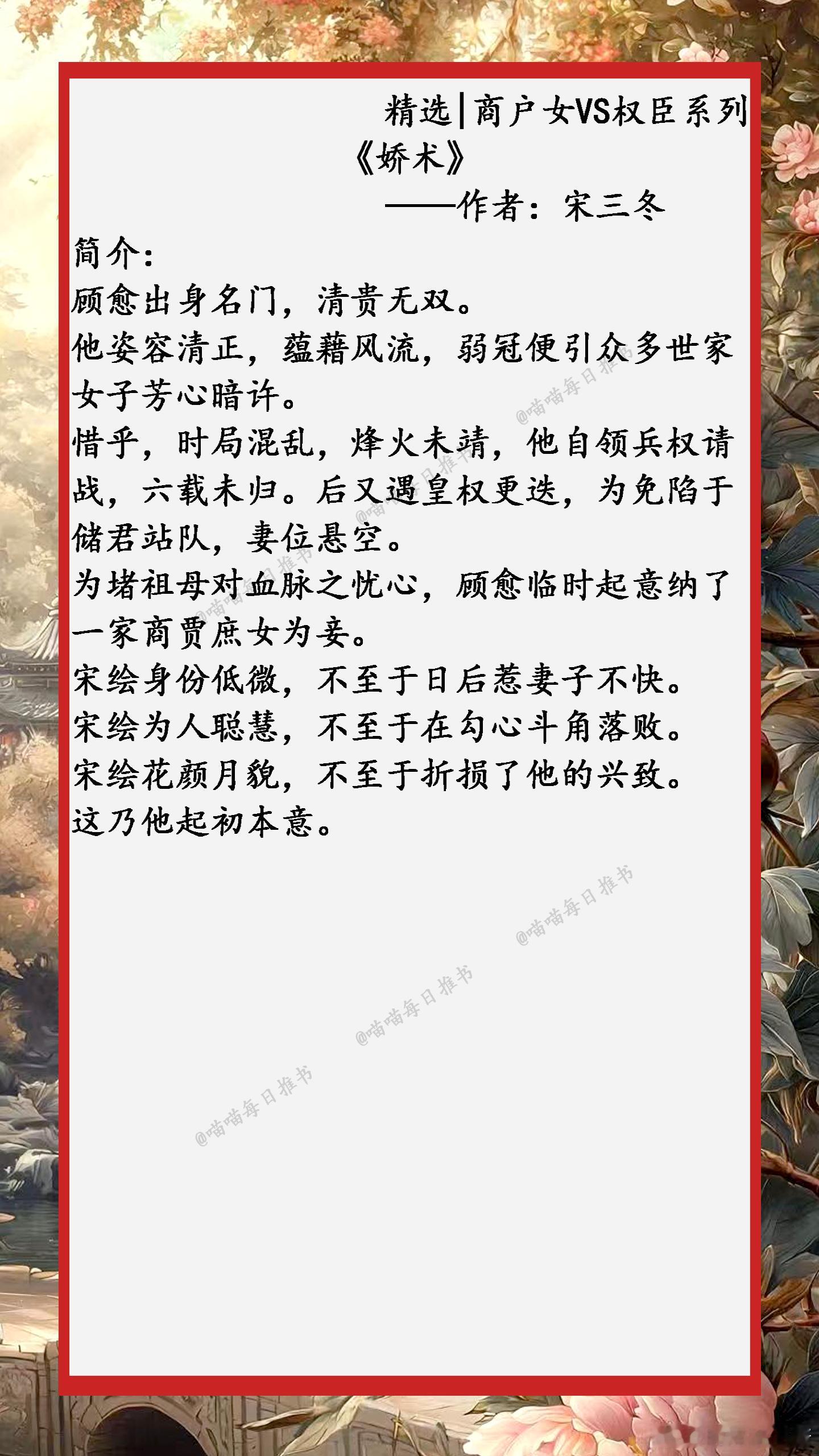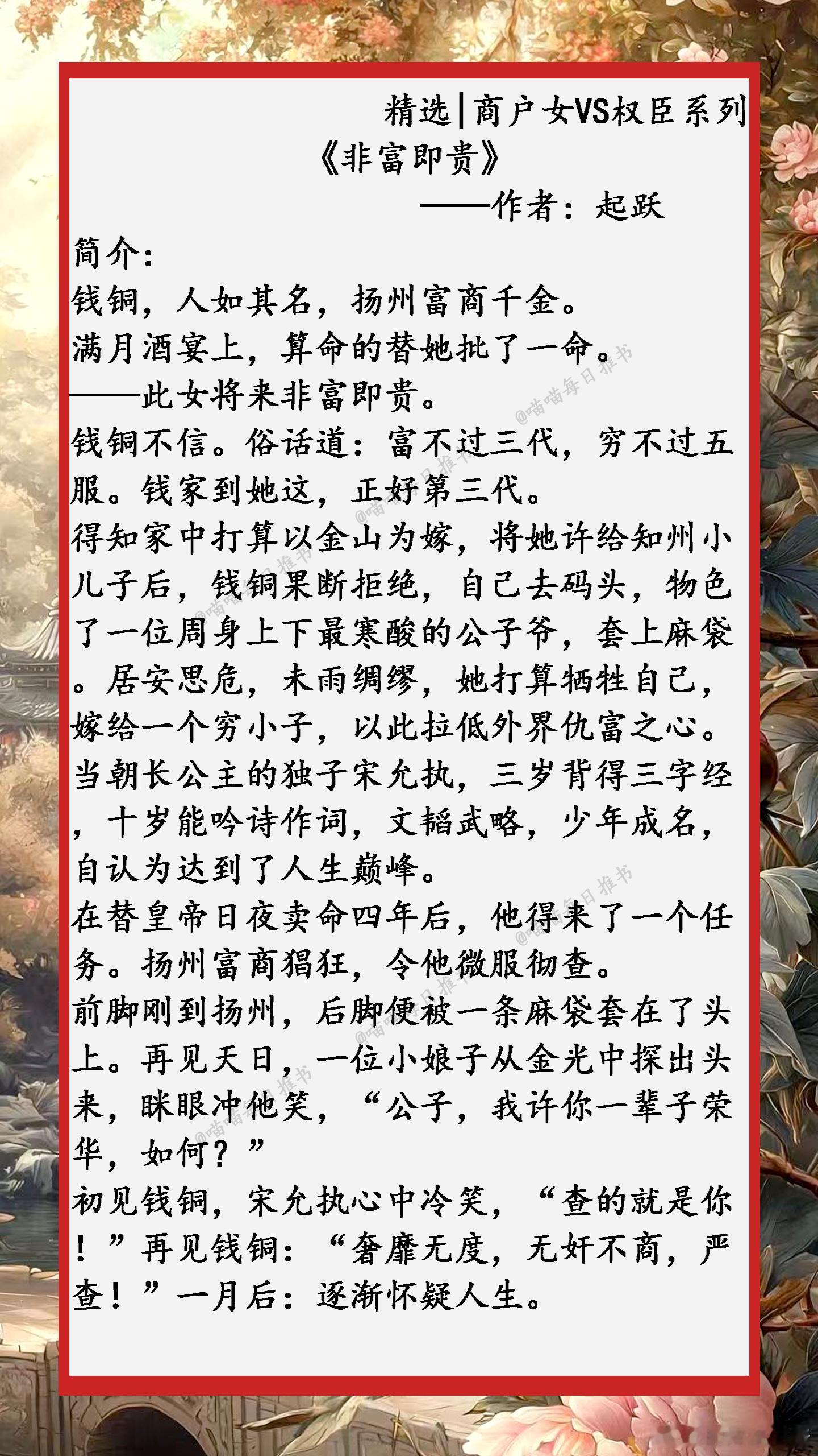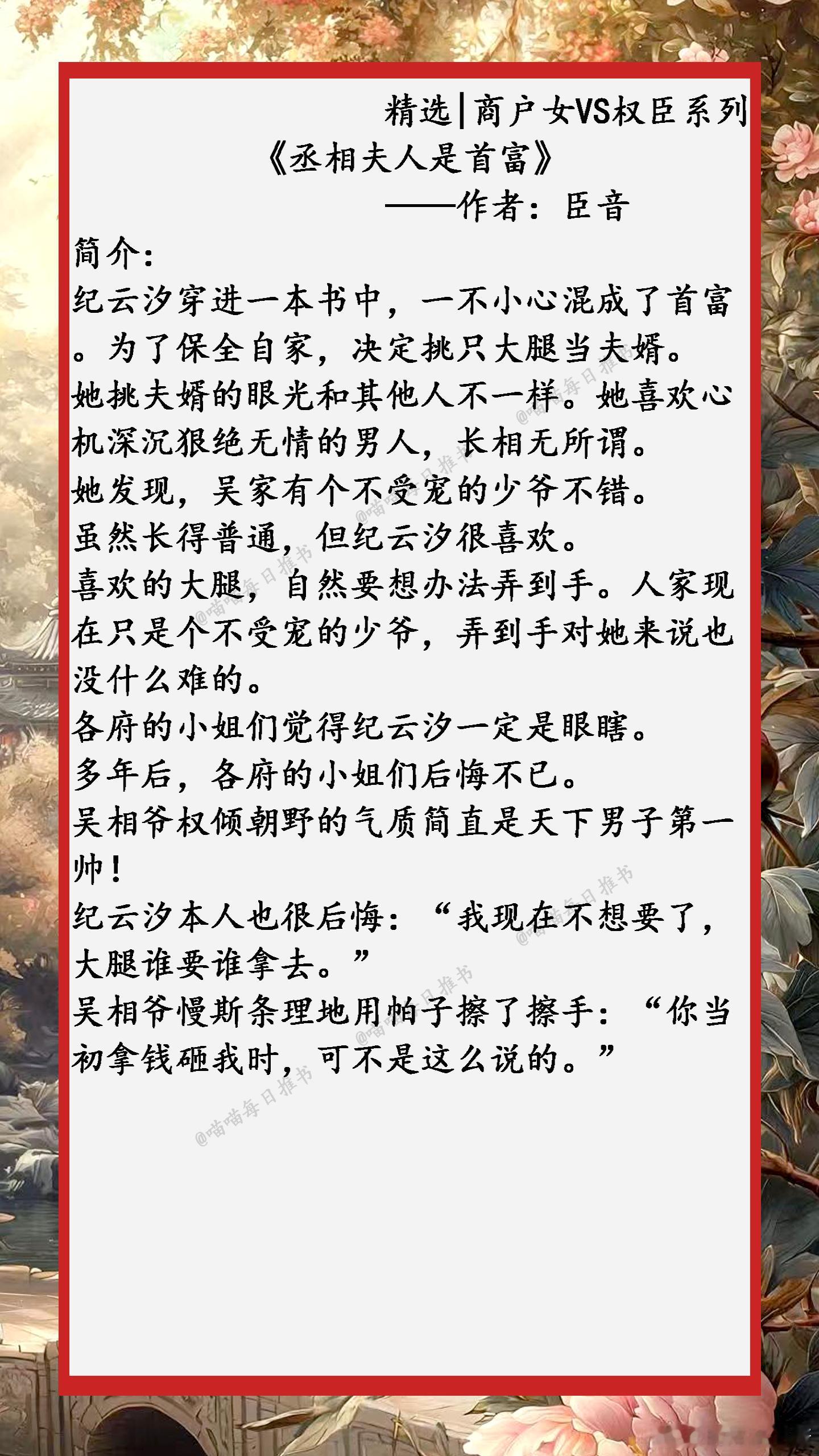 精选【商户女VS权臣】系列合集:疯了吗?不是,他只是心甘情愿.......好看的小说小说推文 1、《盛世为聘》——作者:秦皇2、《醉琼枝》——作者:狂上加狂3、《探花郎的极品二嫂》——作者:绿豆红汤4、《长青》——作者:徐笑鲤5、《非富即贵》——作者:起跃6、《二度春风》——作者:一颗绿毛球7、《丞相夫人是首富》——作者:臣音8、《娇术》——作者:宋三冬9、《阶上春漪》——作者:静沐暖阳