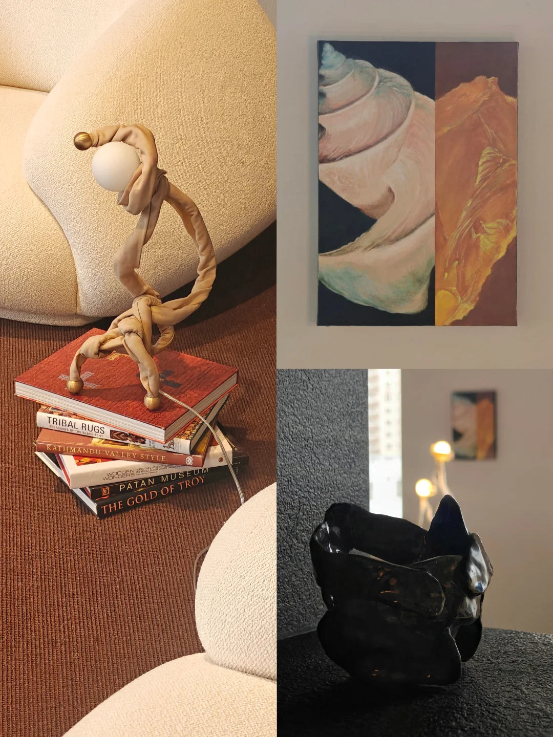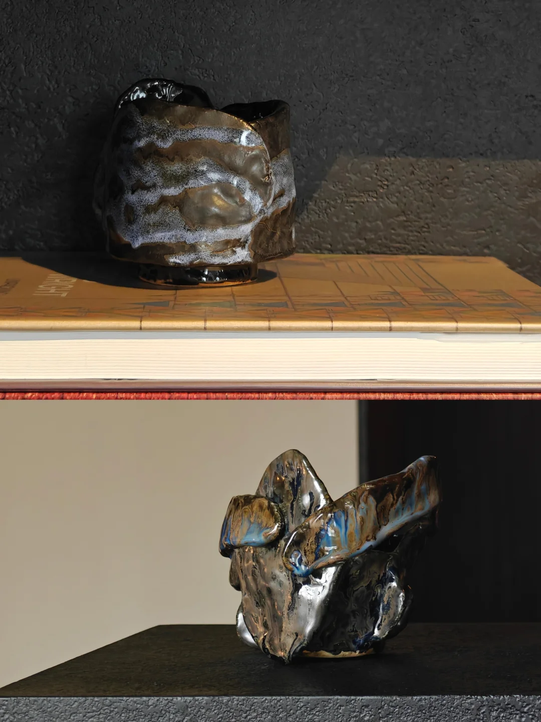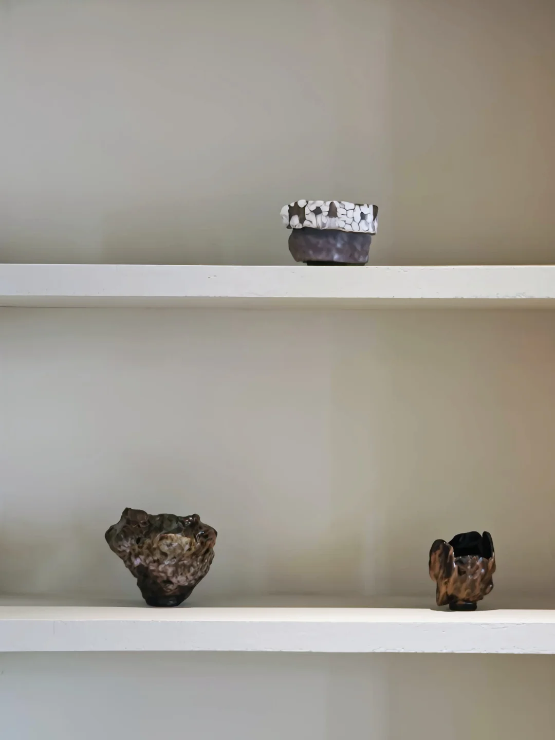 手工捏塑和混合媒介创作,从自然地貌中汲取灵感。用粗砺肌理与内在色彩反差,呈现自然与时间的原生力量。