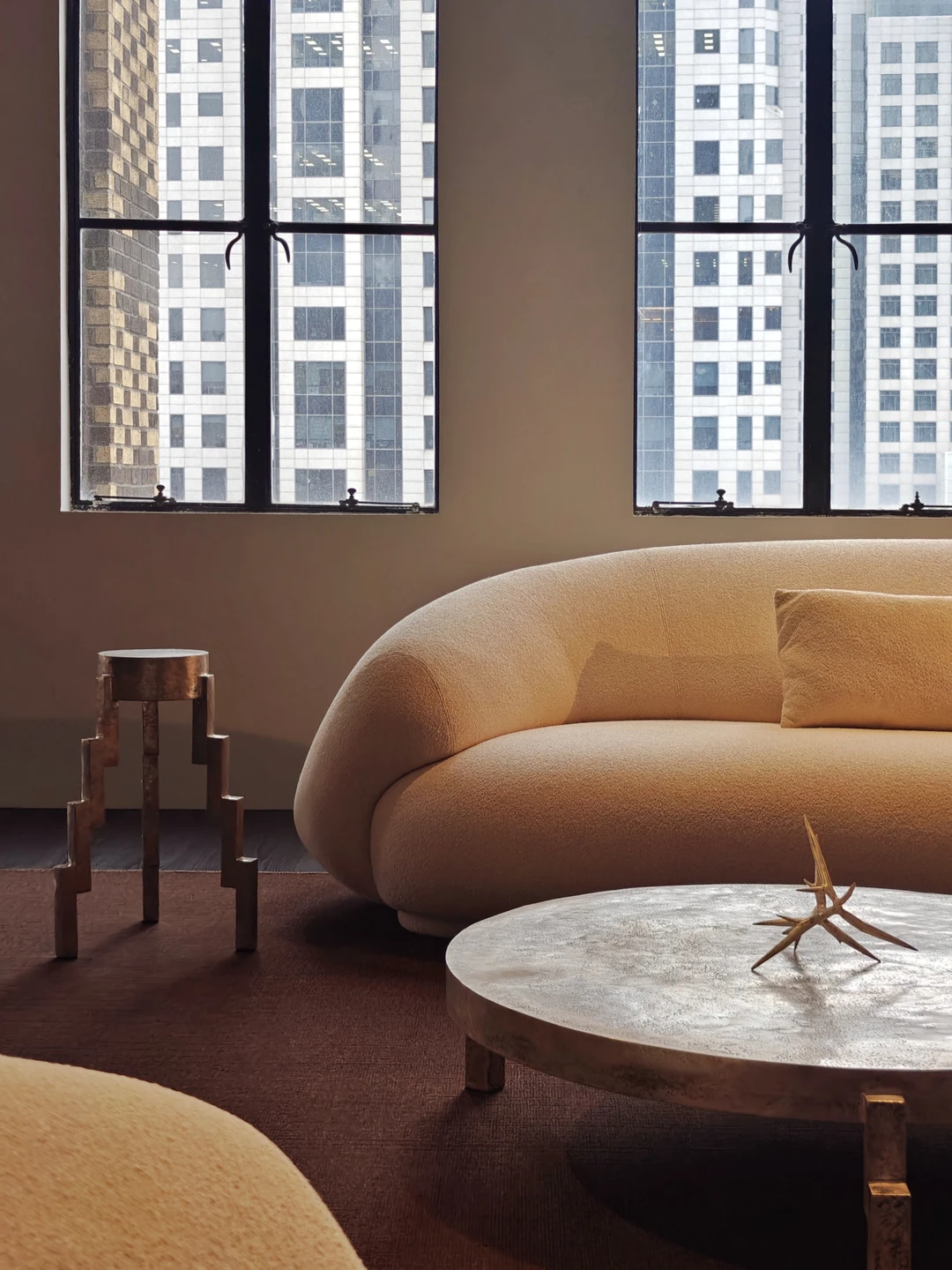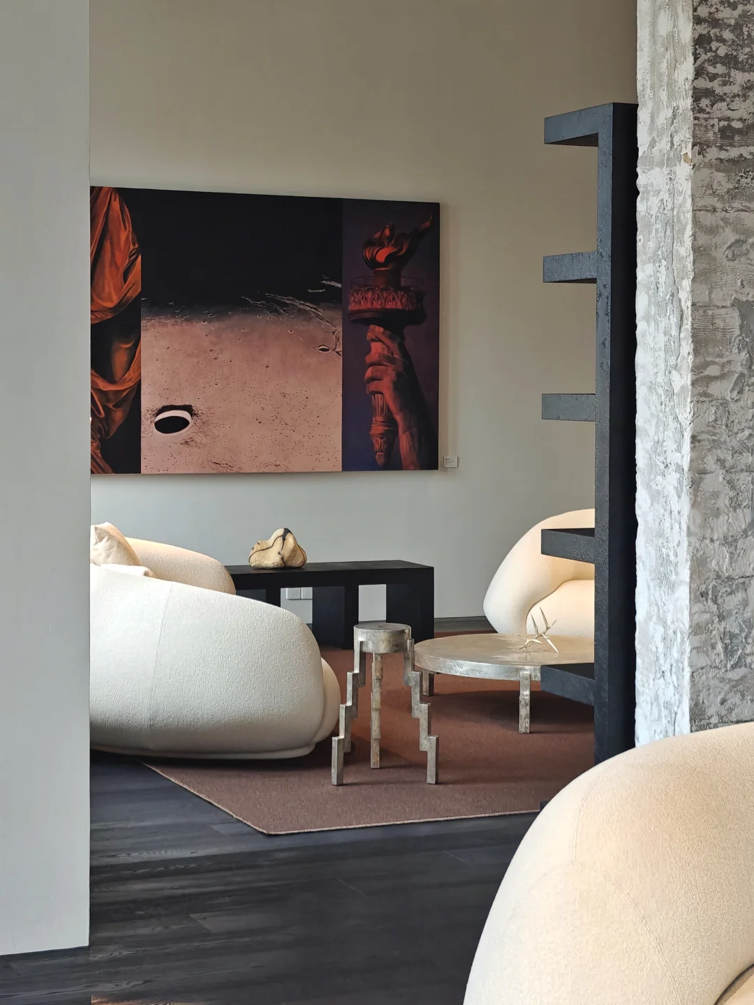 以文明符号为灵感,用金属和玻璃打造极简张力设计。作品在精致与粗粝间制造冲突,探讨秩序与时间的模糊边界。