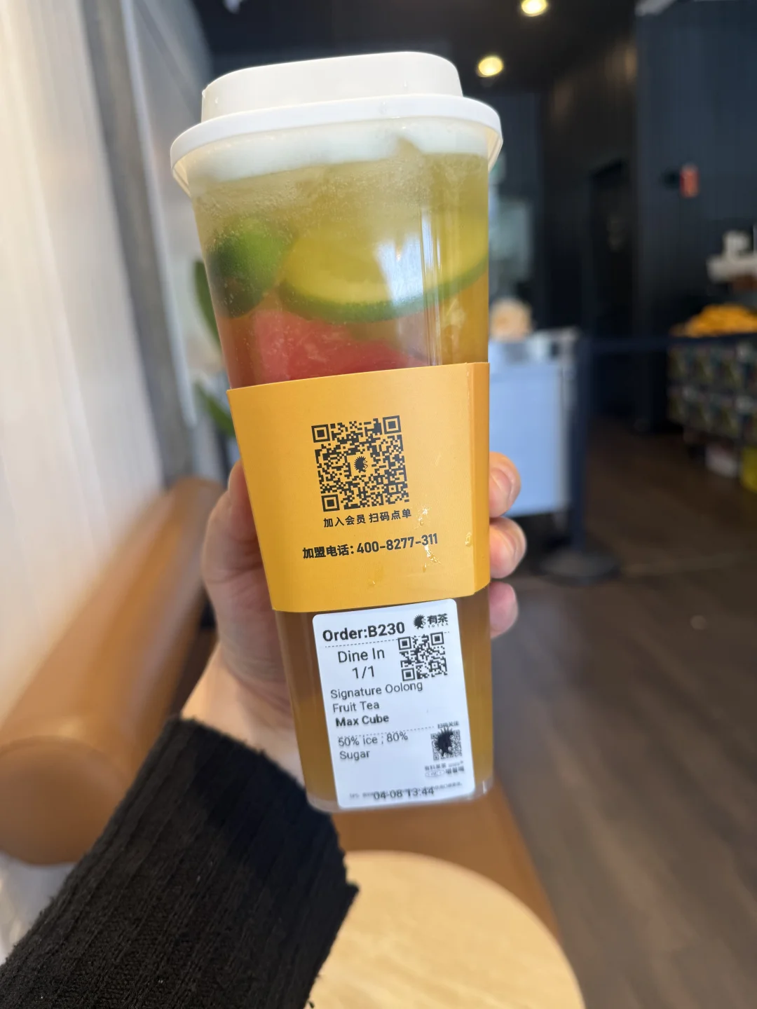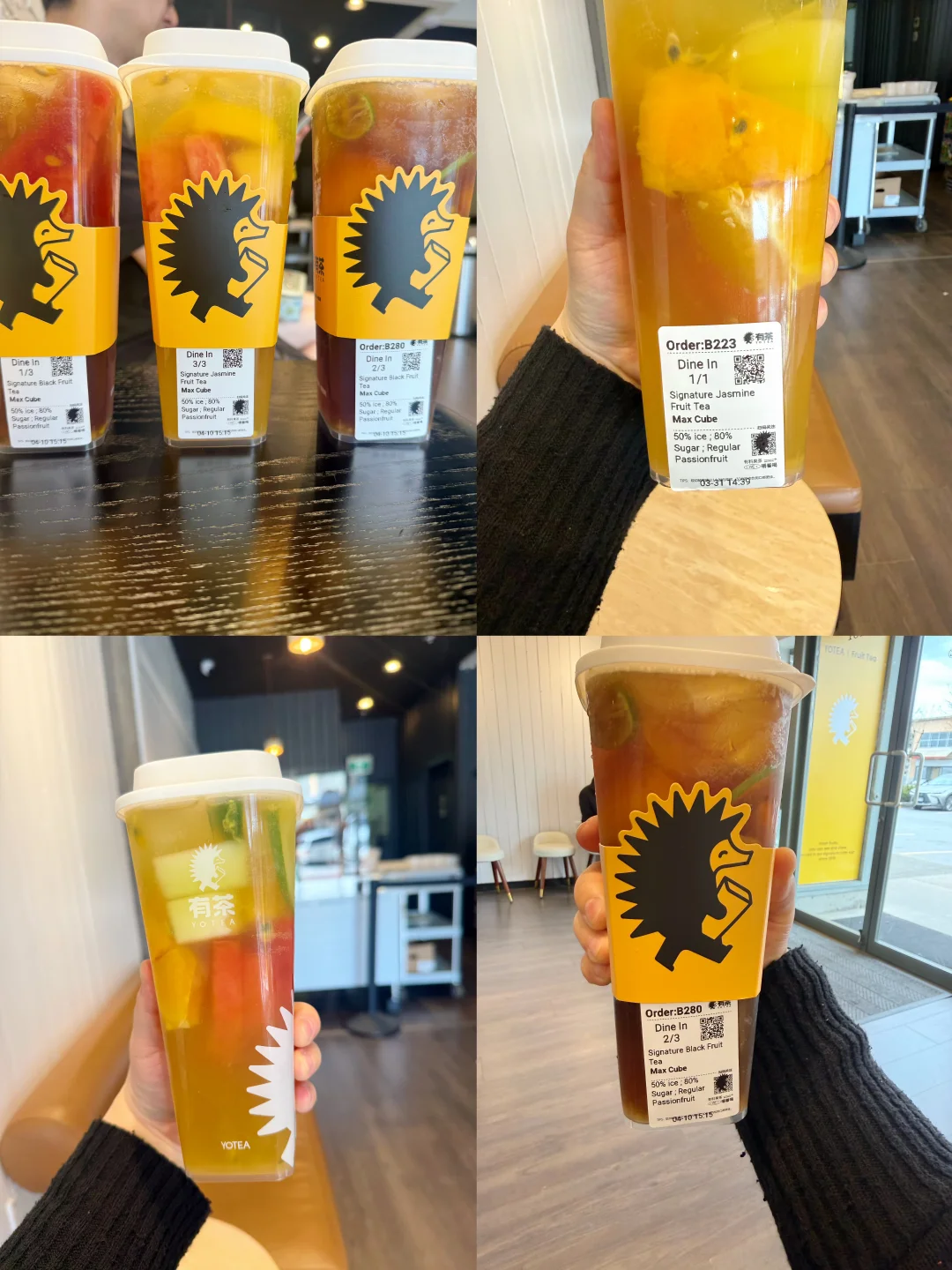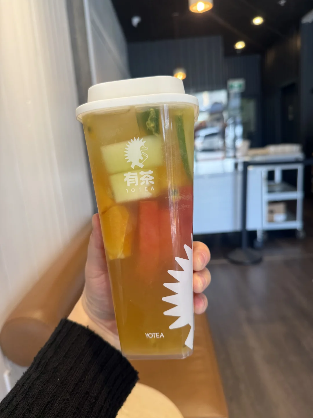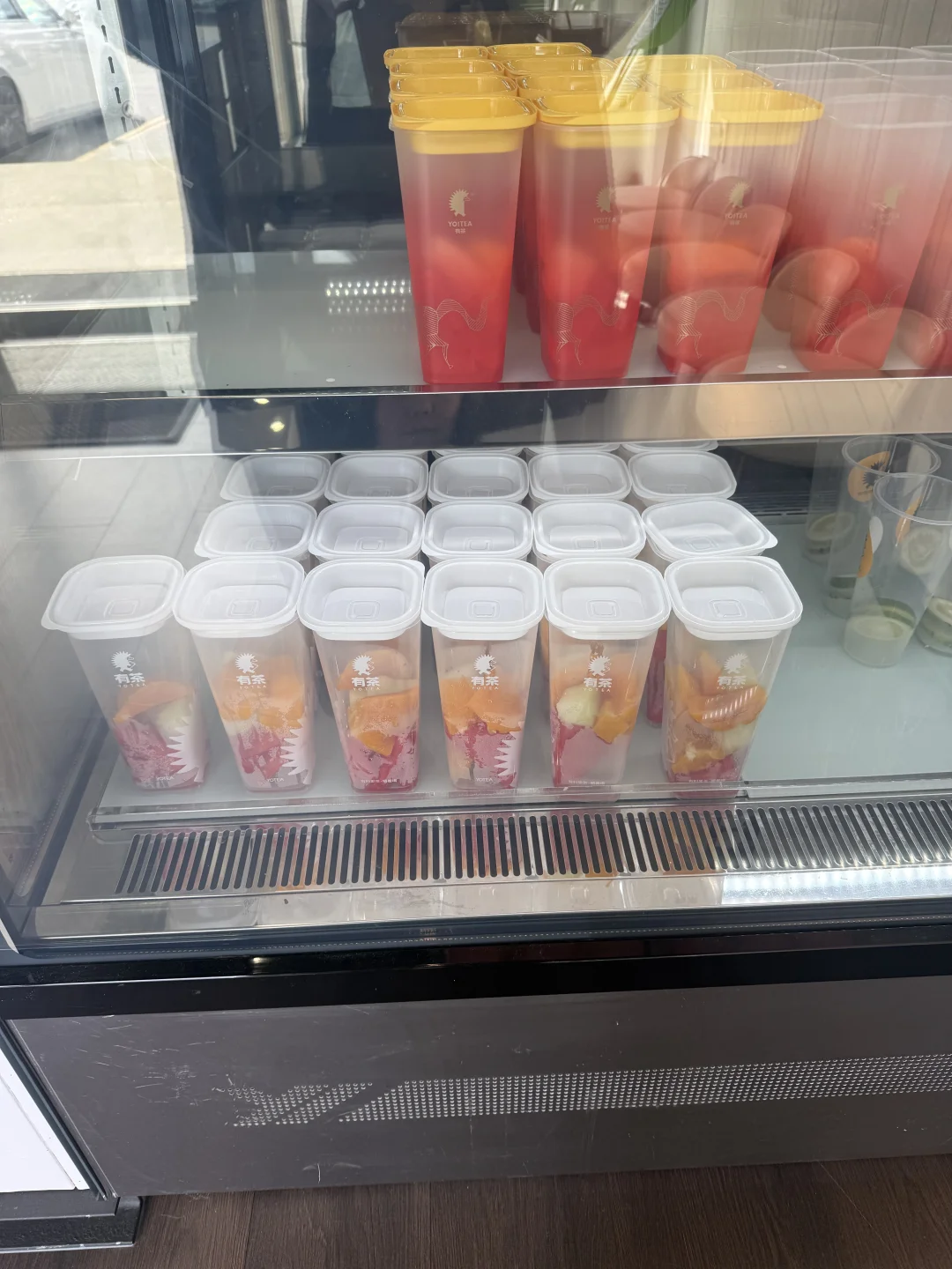 [种草R]【有茶】位于置地广场,一进门就像喜茶一样香气扑鼻,就让人很有想喝一杯的食欲,但【有茶】的水果茶比【喜茶】好喝。水果茶有三种茶地,乌龙,红茶,茉莉花,这里我比较推荐茉莉花的,因为比较有茶香气,建议选大杯的,因为里面还有水果。喝完水果茶,里面的水果很好吃,芒果很甜