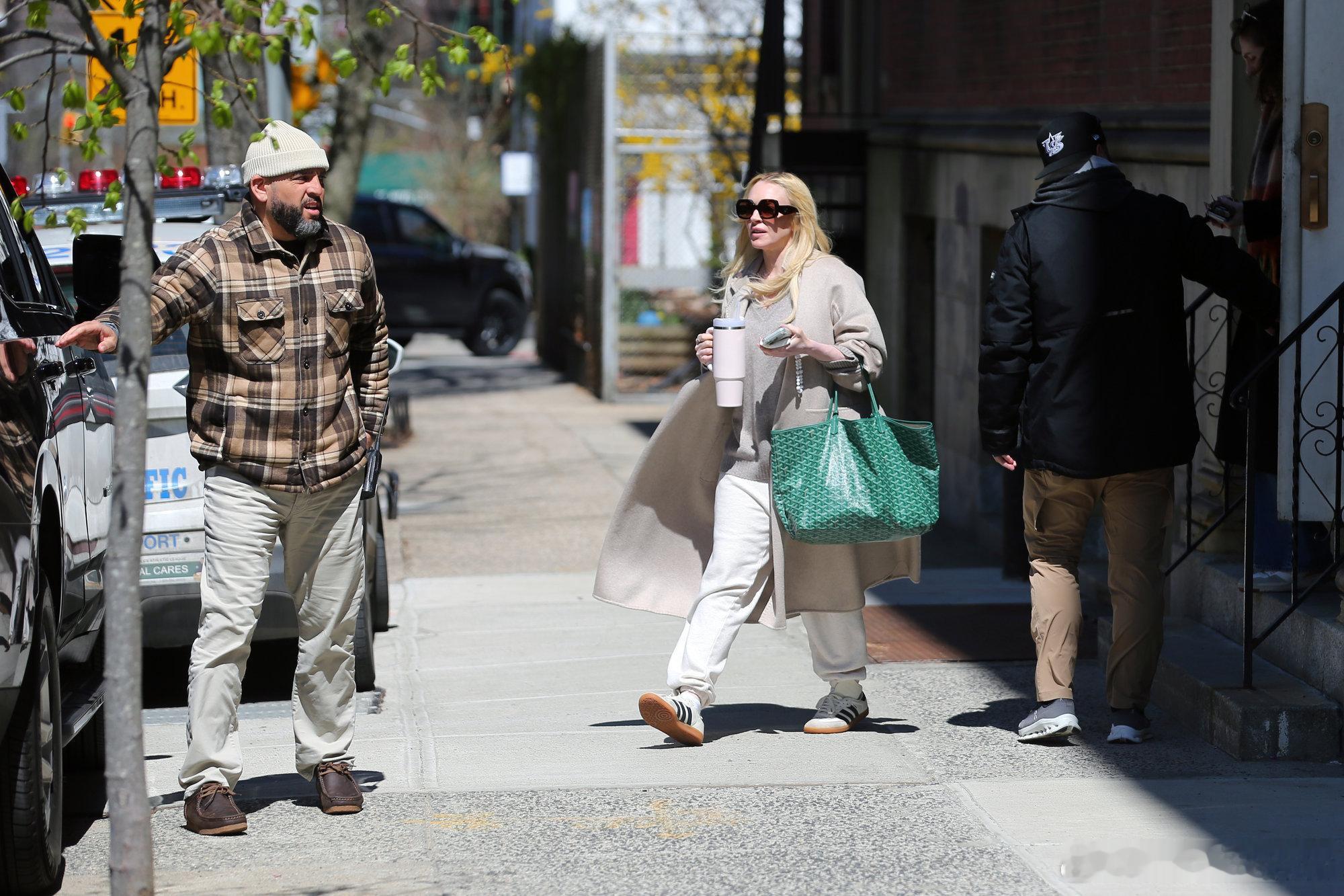 Lindsay Lohan林赛罗韩在纽约外出,下班的lilo挎着个雅戈包拎着水杯离开片场