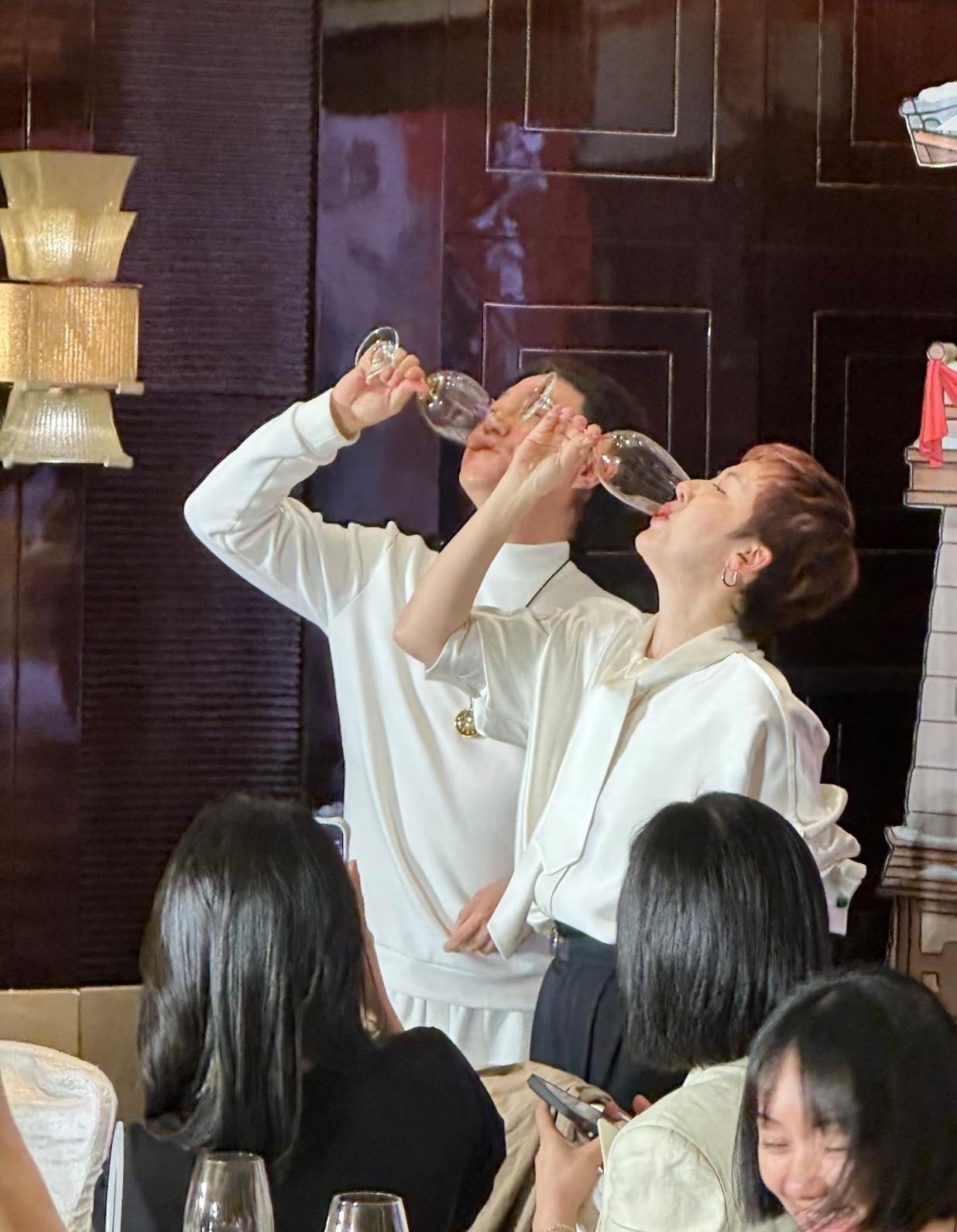 张凌赫的经纪人徐以若和田曦薇的经纪人公钰涵,竟然穿着相似的白色服装,并肩敬酒。